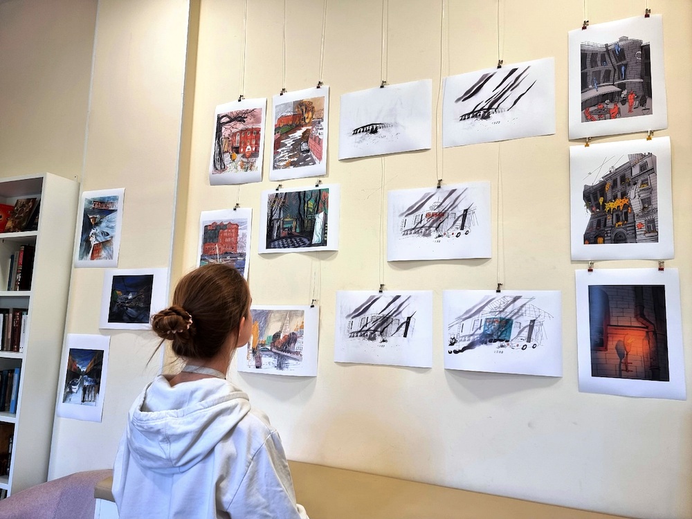 Желающие могли ознакомиться с выставкой работ Дарьи Мартыновой, Ксении Бариновой, Максима Кашина и других иллюстраторов, участников резиденции «Утрачено? Санкт-Петербург», в течение недели художники изучали Санкт-Петербург, пытались увидеть его суть, что и отразилось в чудесных картинах. Выставка была открыта специально в День города и 320-летия Санкт-Петербурга, которые совпали с «Библионочью-2023».