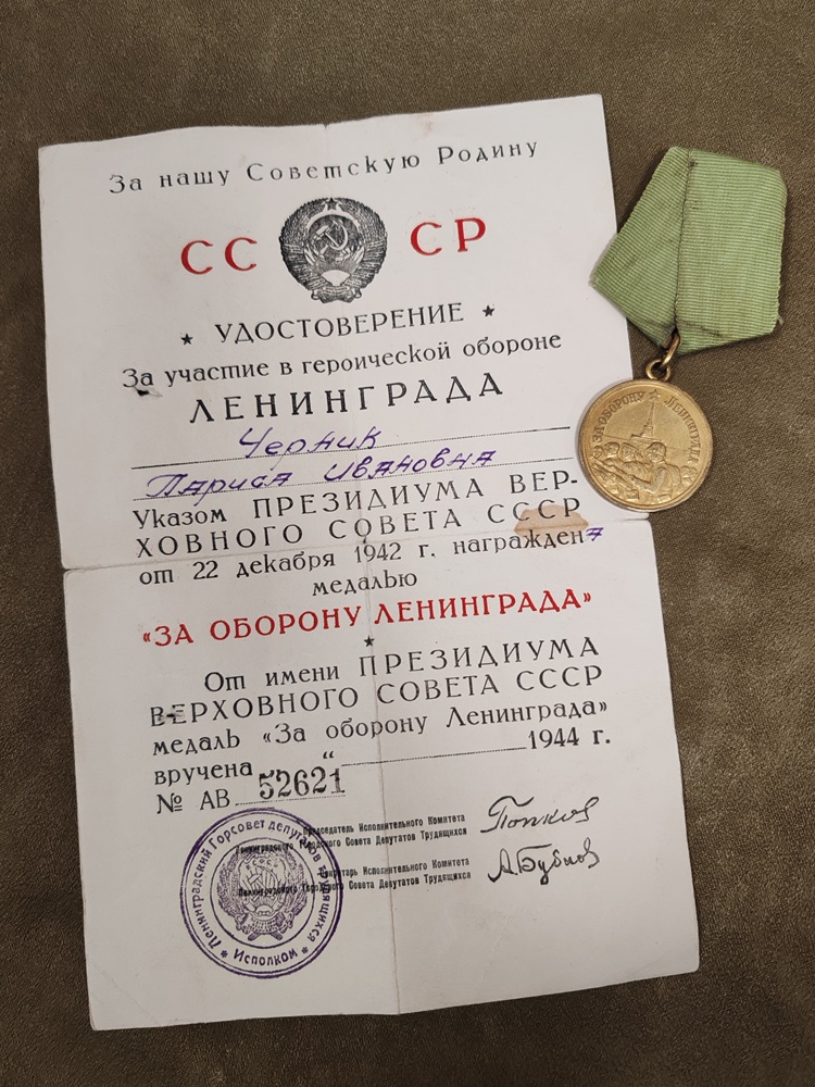 Указом Президиума Верховного Совета СССР от 22 декабря 1942 год Черник Лариса Иванова была награждена медалью «За оборону Ленинграда».