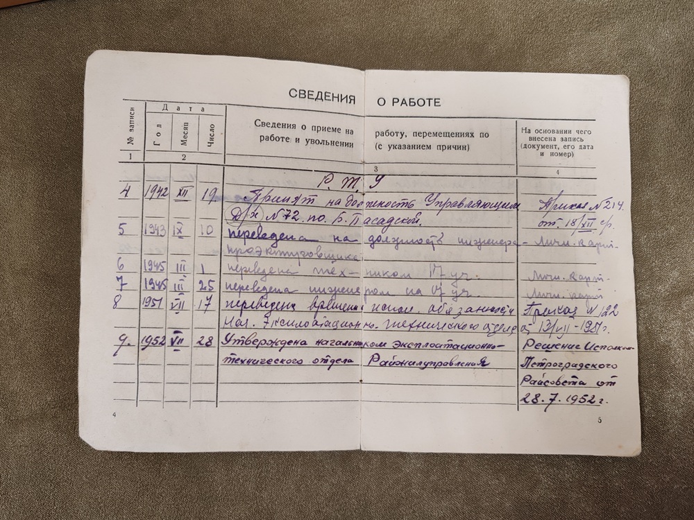 Моя бабушка Черник Лариса Ивановна имела образование инженера механика-конструктора. Согласно трудовой книжке, 19 декабря 1942 года была принята на должность управляющего домохозяйством № 72, располагающегося по ул. Б. Посадской Петроградского района, где прожила и проработала всю блокаду.