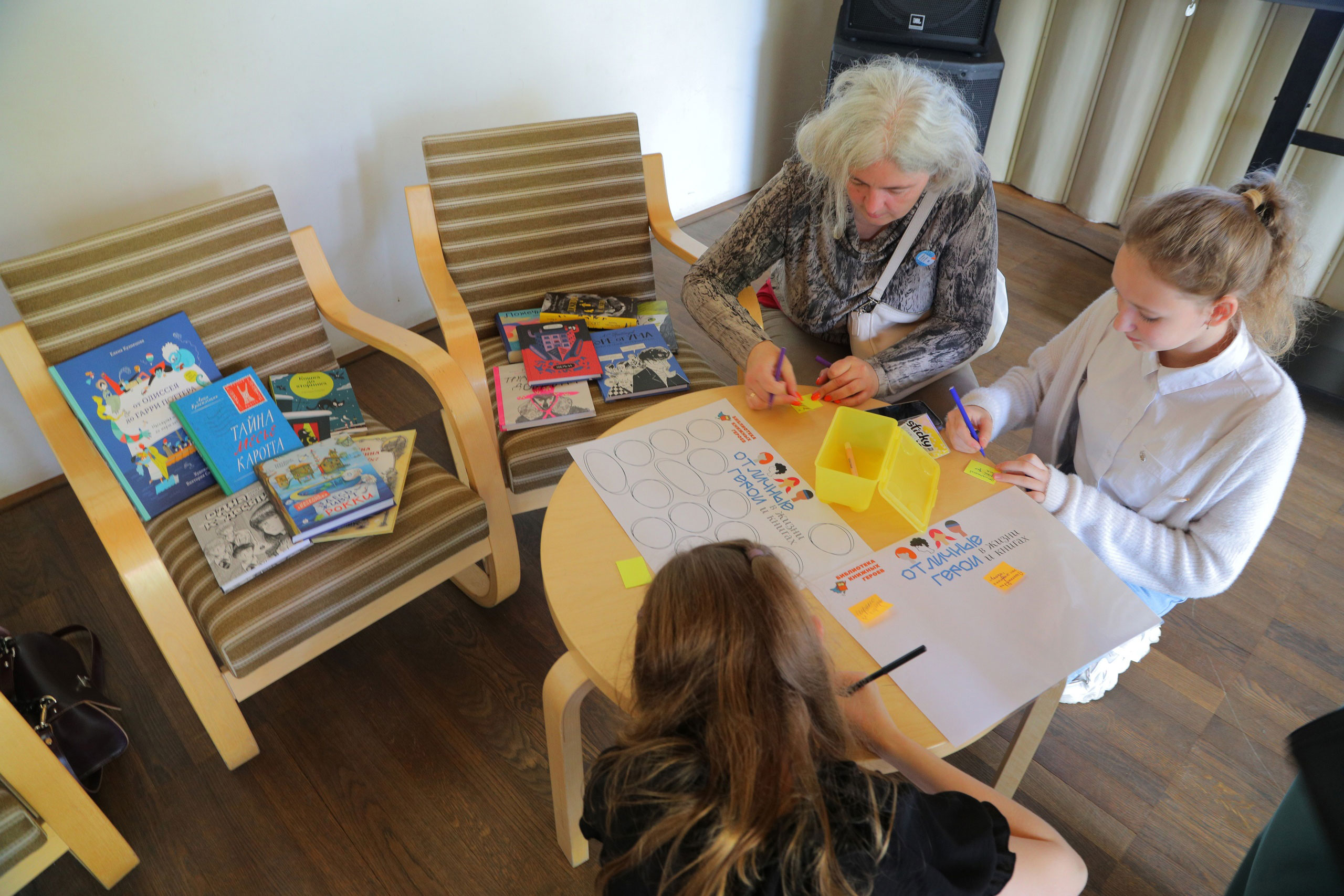 После книжного утра состоялась встреча Библиотеки книжных героев с юными читателями – «Твой взгляд на героев: «сверху», «снизу», «сбоку» – не игра и не обсуждение, просто невероятное событие», на которой разговор об отличных книгах и героях продолжился. Подростки искренне делились впечатлениями о литературных произведениях, спорили друг с другом и отстаивали перед собравшимися любимых персонажей.