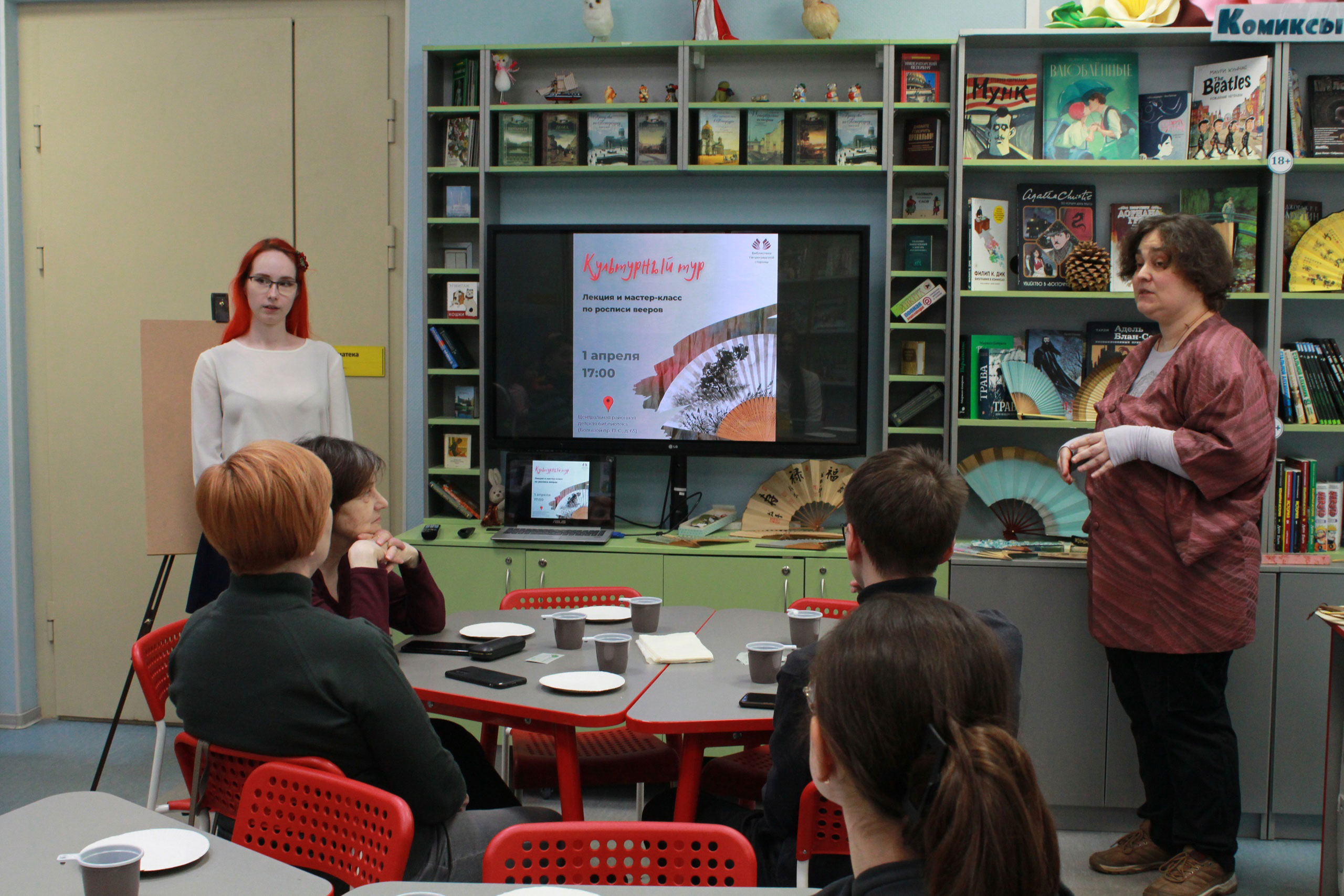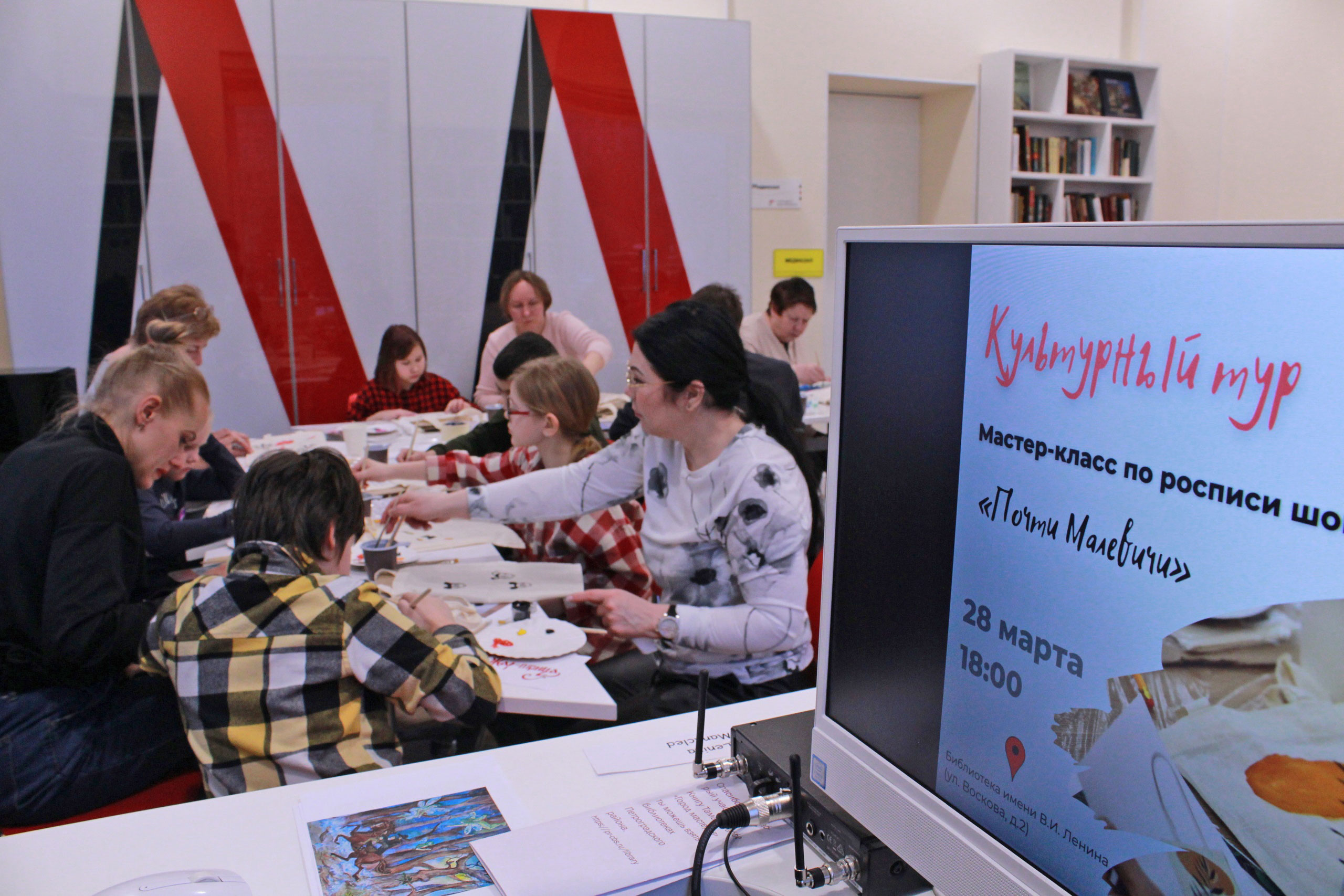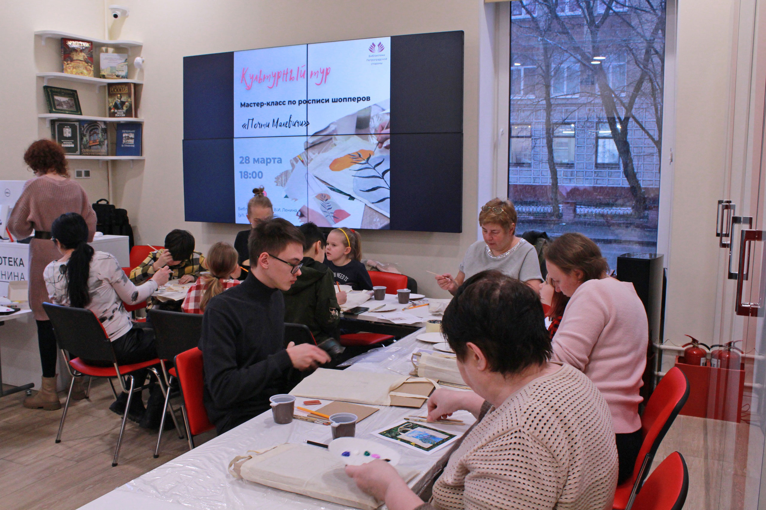 Участники Культурного тура работали с самозатвердевающей глиной на мастер-классе «Живое творчество» в Библиотеке на Карповке, стали почти Малевичами на одноименном мастер-классе по росписи шопперов акрилом в Библиотеке Ленина; узнали, что такое вощина и сделали из неё экологические свечи в Библиотеке на Троицкой площади, познакомились с поталью на мастер-классе по акварельной росписи «Мы просто порисовать» в Библиотеке Кировских островов и рисовали тушью на веерах в Центральной районной детской библиотеке, где послушали увлекательную лекцию «Веер в культуре Дальнего Востока».