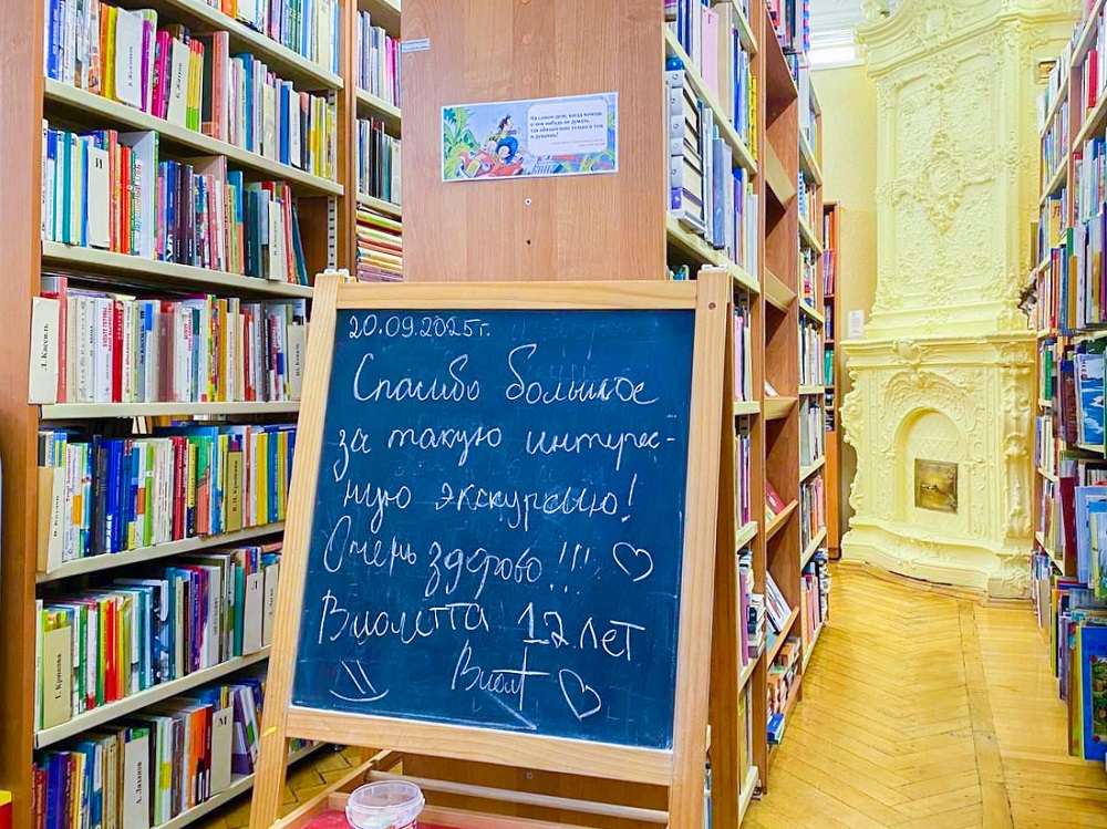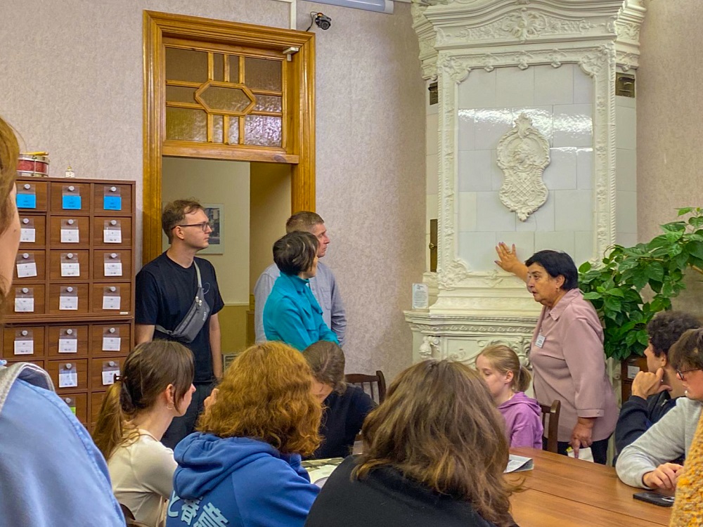 Гости Юношеской библиотеки им. А. П. Гайдара совершили виртуальное путешествие по улицам района, а также осмотрели залы и служебные помещения библиотеки, размещённой в историческом доходном доме купцов Федора и Николая Колобовых, построенном техником Павлом Мульхановым. Они познакомились с уникальной коллекцией старинных изразцов, редкими изданиями книг и архивными документами, хранящимися в фондах библиотеки.