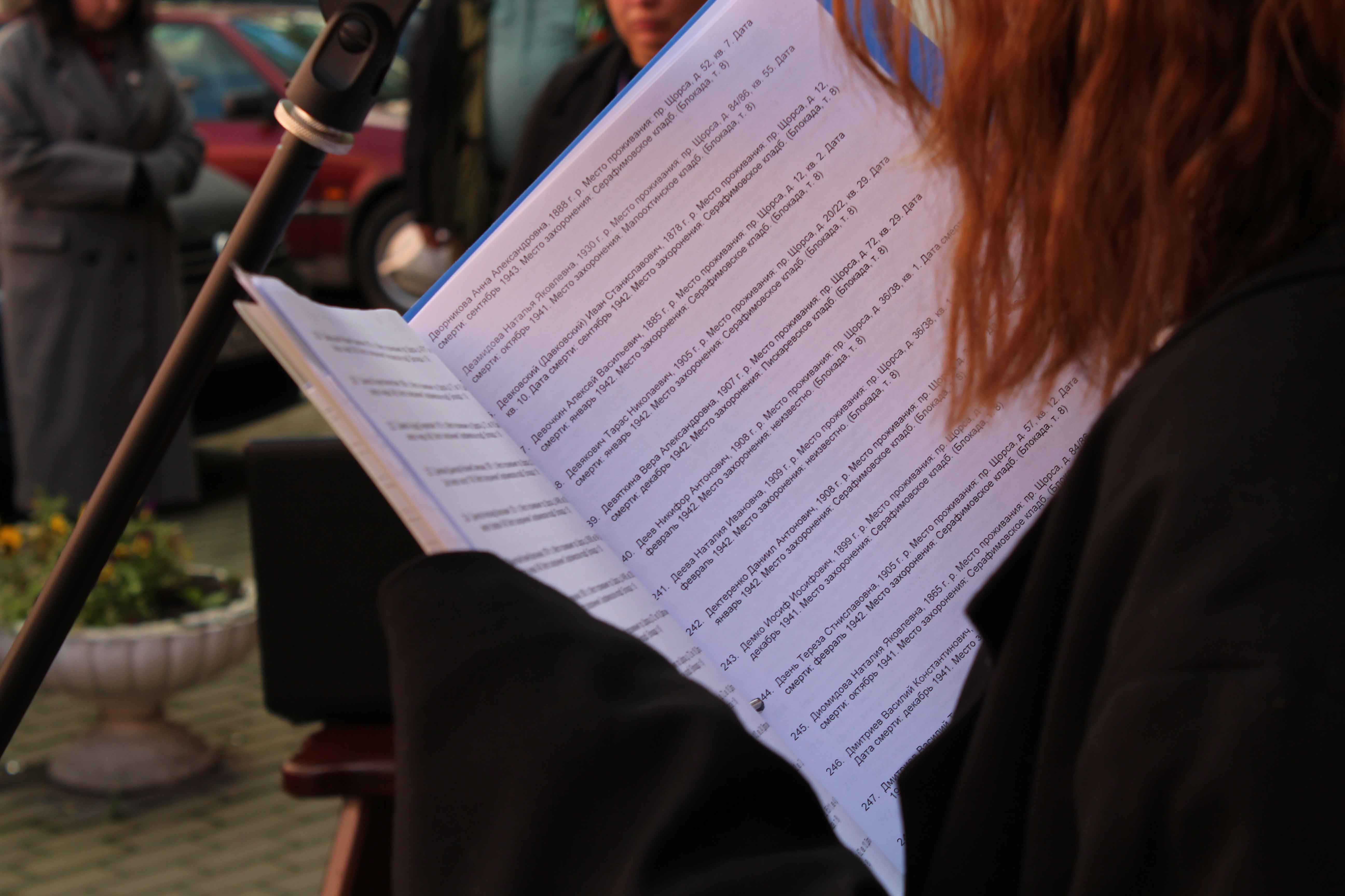 44 участника акции в библиотеках за три часа назвали 592 фамилии людей, погибших во дворах жилых домов, школ, учреждений, на городских площадях. Многие из них были жителями Петроградской стороны.