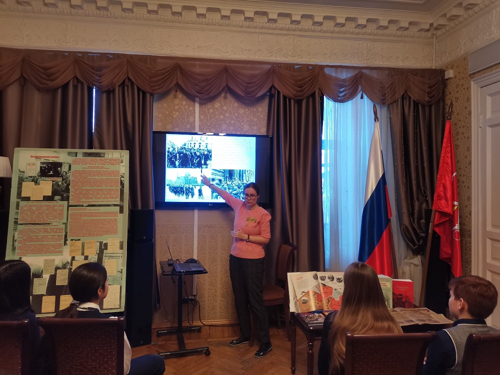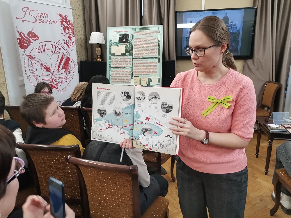Библиотека, основанная в 1930 году, продолжала работать в годы войны и блокады, сохраняя доступ к книге и знаниям в самых тяжёлых условиях. Гости библиотеки узнали о книгах и журналах, которые выходили в период войны и блокады, о работе театров, музеев и библиотек Петроградского района. Также познакомились с непростой работой школ и детских садов блокадного Ленинграда.