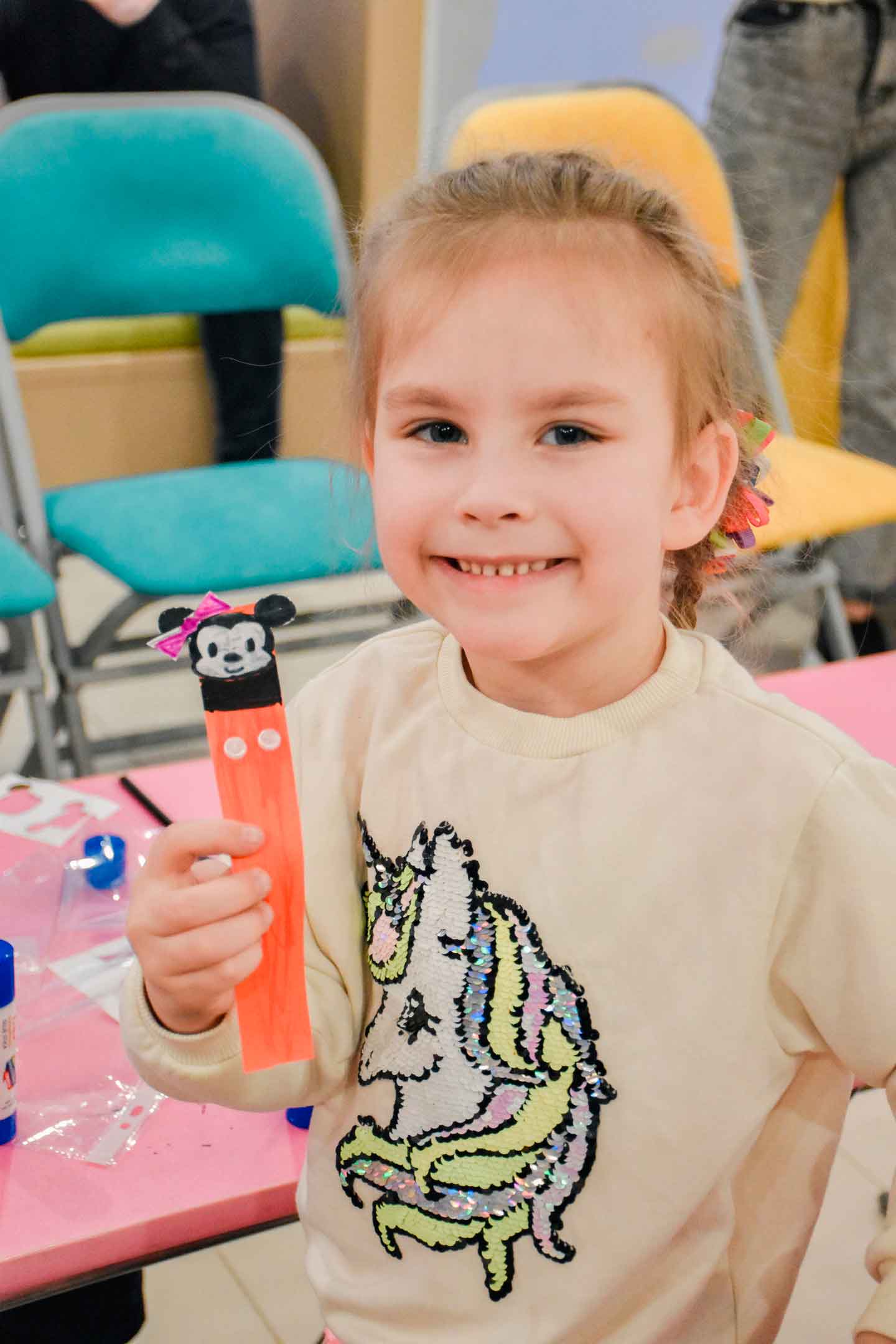 ​​​​​​​Завершилось занятие мастер-классом, на котором каждый сделал себе книжную закладку с главным символом студии «Дисней» – Микки Маусом.