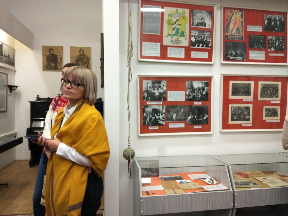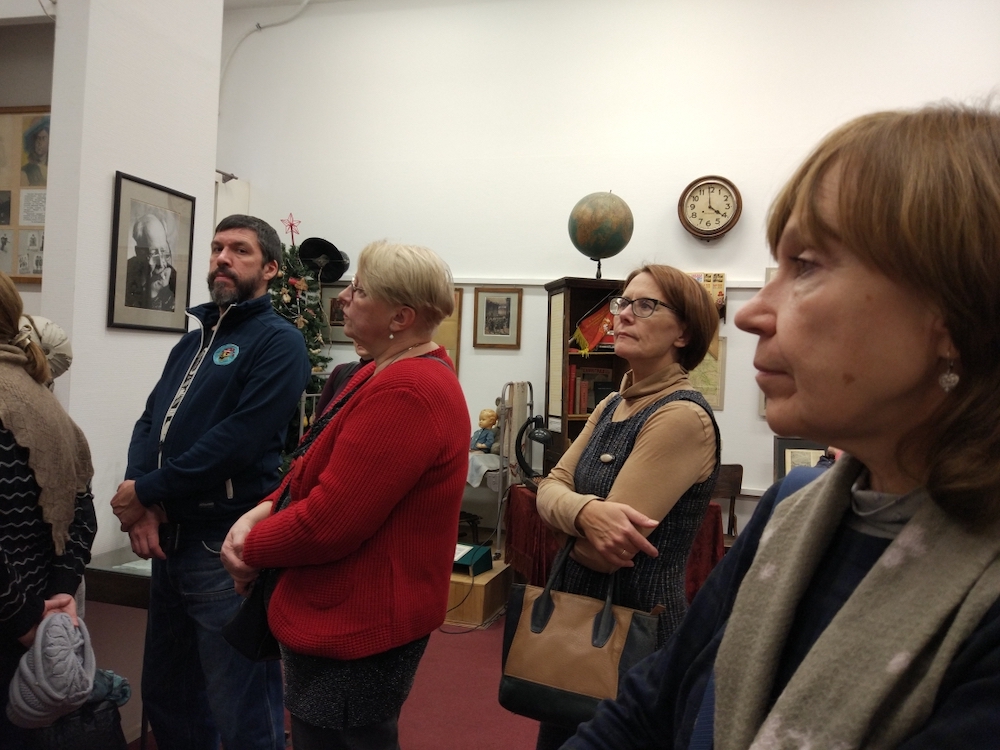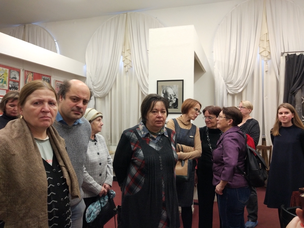 Экскурсанты познакомились с личностью любимого учителя словесности Д. С. Лихачева — Леонида Владимировича Георга, рассмотрели атрибуты школьного театра, создателем которого он является.