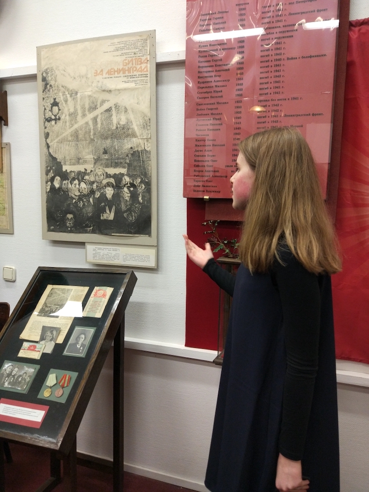 С историей школы № 47 имени Д. С. Лихачёва, историей ее создания и многочисленными переименованиями, а также со всеми этапами развития народного образования в России, познакомила участников экскурсии ученица 11 класса Малина Томилина.