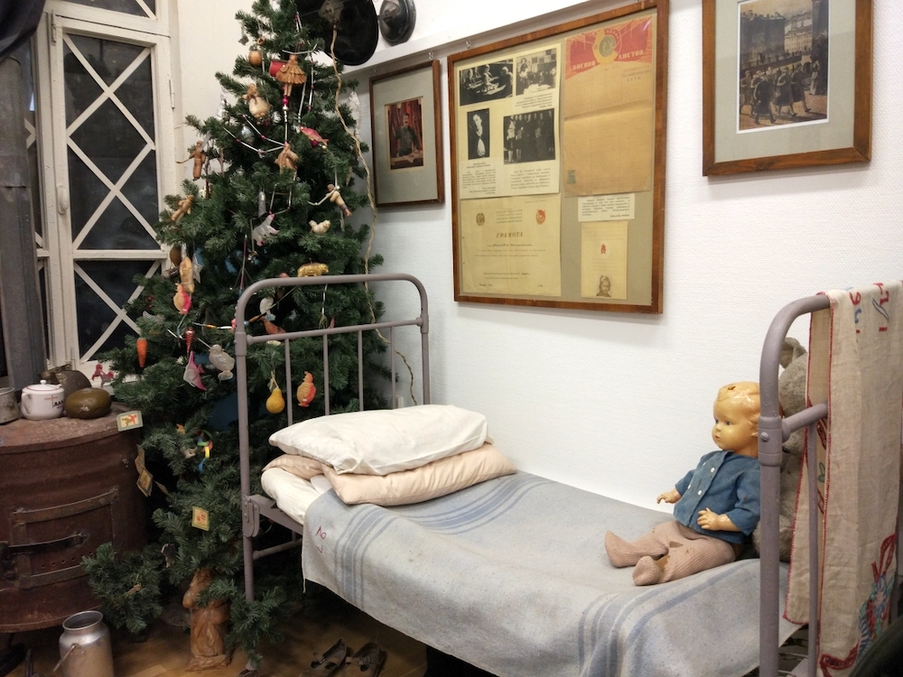 Школа работала в годы Великой Отечественной войны: здесь проводились олимпиады и даже новогодние елки. В экспозиции музея представлена елка с игрушками, которые сумели сберечь в послевоенное время.
