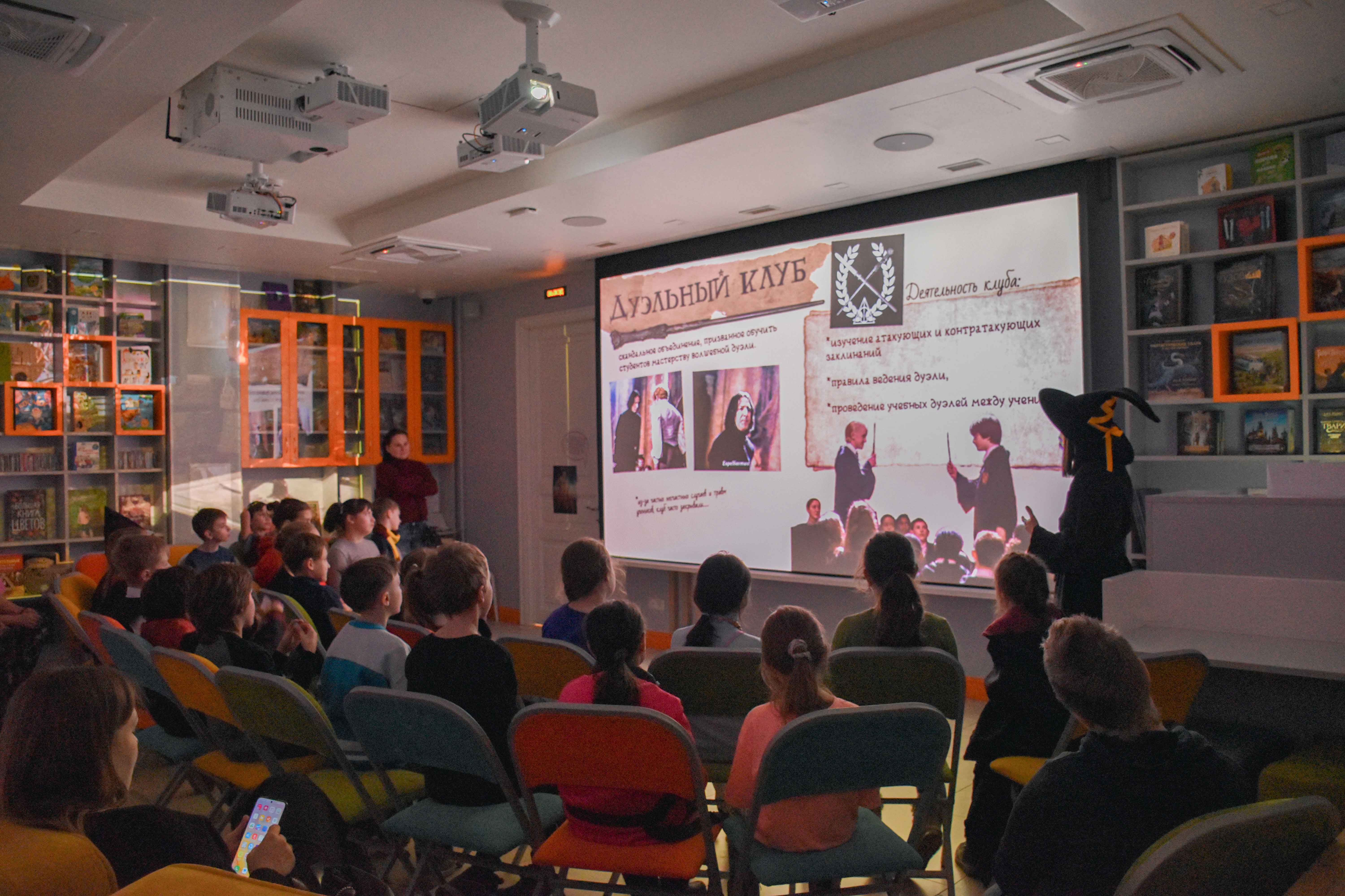 В Библиотеке книжных героев (ул. Ленина, д. 20) юные читатели узнали, что в замке Хогвартс студенты занимаются не только учёбой, изучением состава зелий, защитой от горных троллей и поеданием шоколадных лягушек. Каждый учащийся также может вступить в клуб по интересам, чтобы проявить свои способности в дуэльных схватках, полётах на метле, пении в хоре и даже поучаствовать в освобождении домовых эльфов от рабства. Вступить в новый тайный клуб Хогвартса смогли только самые смелые и дерзкие ученики, которые не боятся загадок, призраков, подземелий и потайных комнат. Разделившись на четыре команды, ребята пытались раскрыть тайны Гриффиндора, Когтеврана, Пуффендуя и Слизерина: разгадывали пароли, чтобы попасть в гостиные факультетов, узнавали, что скрывают призраки замка, какие предметы связаны с магами- основателями.