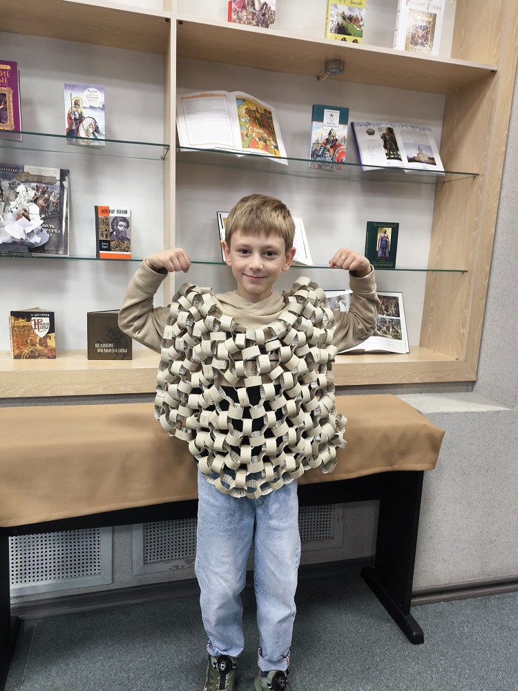 Одним из самых запоминающихся мероприятий программы стала примерка бумажной кольчуги. Это позволило участникам не только прикоснуться к истории, но и лучше понять, как Александр Невский мог побеждать своих врагов. Примерка кольчуги вызвала у детей и взрослых живой интерес и восхищение. Многие участники отметили, что это было не только увлекательно, но и познавательно. Они смогли представить себя на месте воинов, защищавших свою Родину, и понять, насколько трудным и опасным был путь Александра Невского.