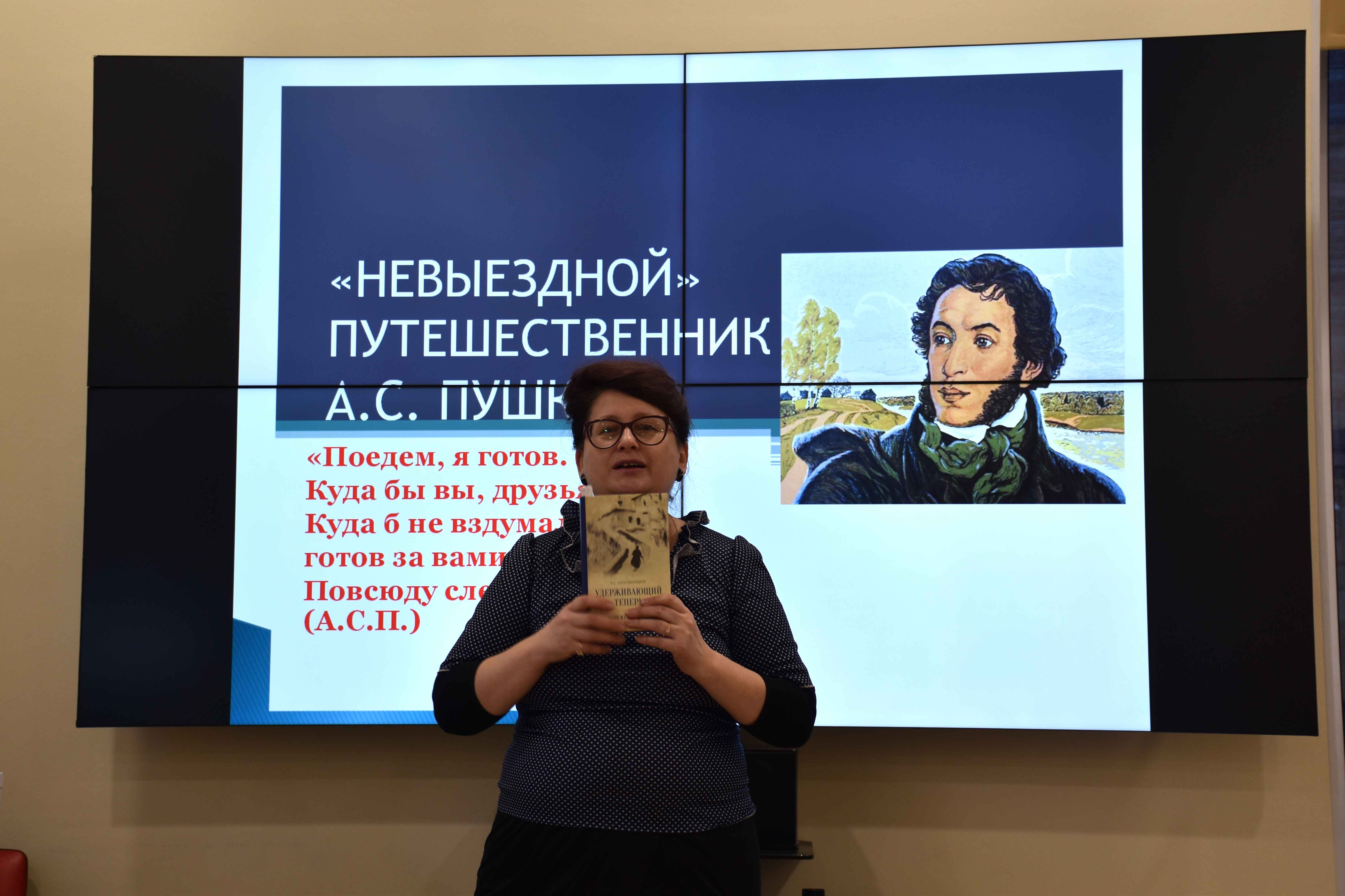 Для взрослой аудитории состоялась лекция «Невыездной путешественник Пушкин». Ольга Озерова, член ЛИТО «Балтийский парус» Санкт-Петербургского Дома писателей, рассказала о том, почему Александр Сергеевич был «невыездным», а еще - не самые известные факты его пребывании в Псковской и Тверской губерниях. Кстати, Пушкин только по дорогам и трактам за свою непродолжительную жизнь проехал 35 тысяч верст (больше, чем все переходы Н.М. Пржевальского).