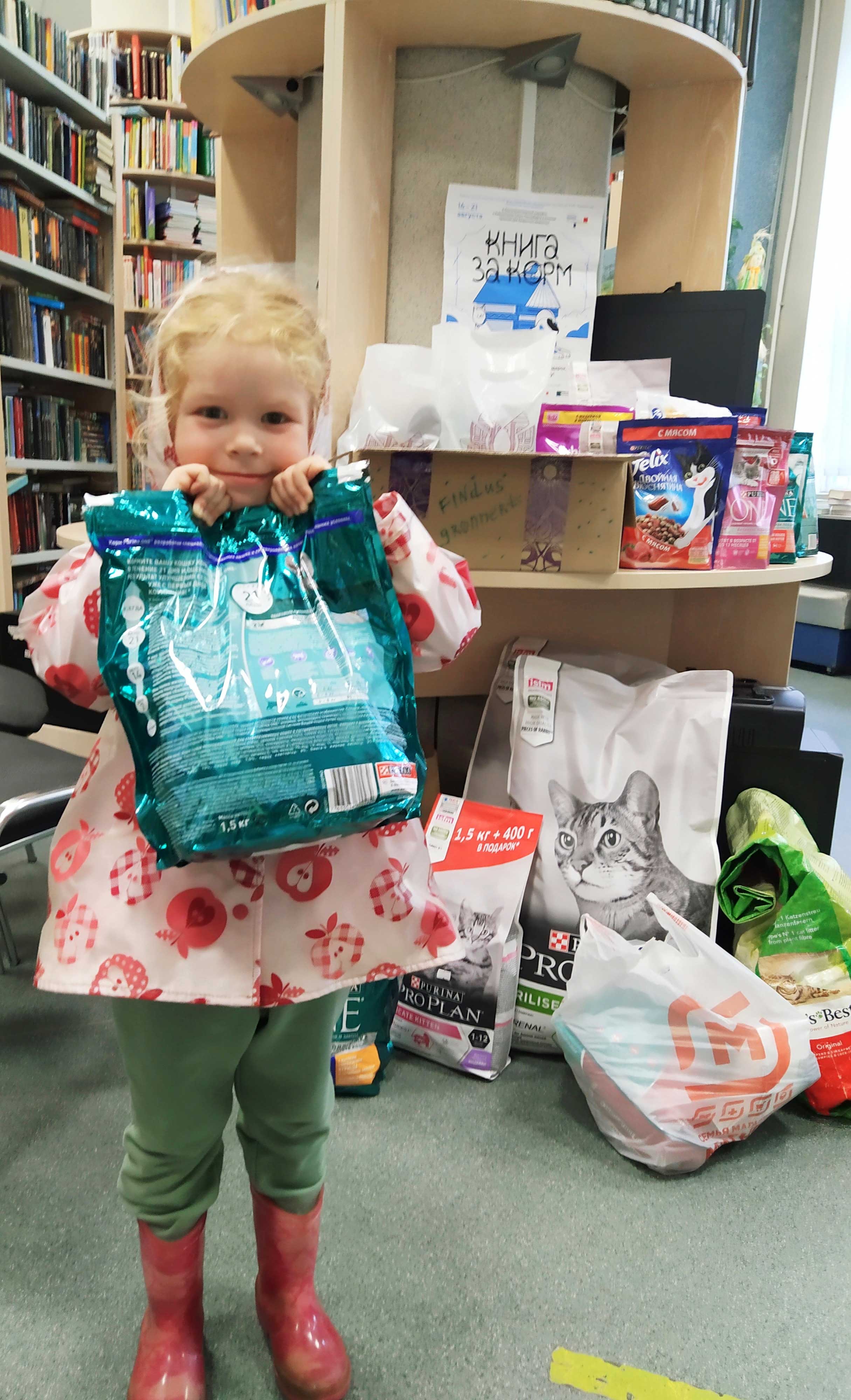 С 16 по 21 августа в библиотеках Санкт-Петербурга прошла акция «Книга за корм», организованная библиотекой «На Стремянной» МЦБС им. М. Ю. Лермонтова. Суть проста: любой желающий мог принести корм или хозяйственные средства для приюта в библиотеку и получить в подарок за доброе дело книгу.