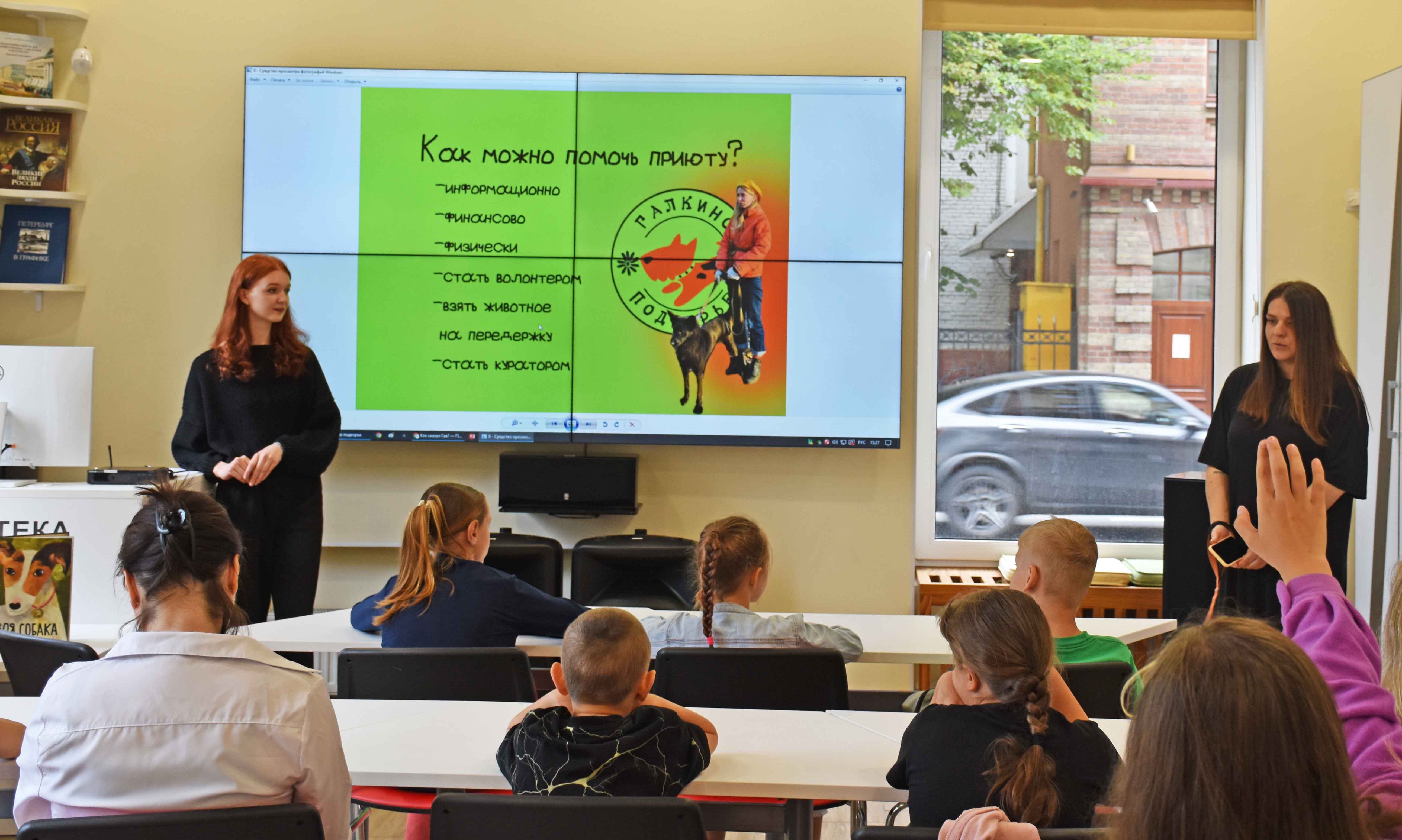 Приглашённым гостем занятия в библиотеке имени В.И. Ленина стала волонтёр приюта для бездомных животных Ольга и пёс Махмуд, бывший подопечный приюта. Участники интерактивной программы познакомились с различными породами собак, профессией «кинолог», разгадали кроссворд по пройденному материалу, а потом Ольга поделилась, какими способами можно оказывать поддержку бездомным хвостикам и о всех тонкостях работы с ними.