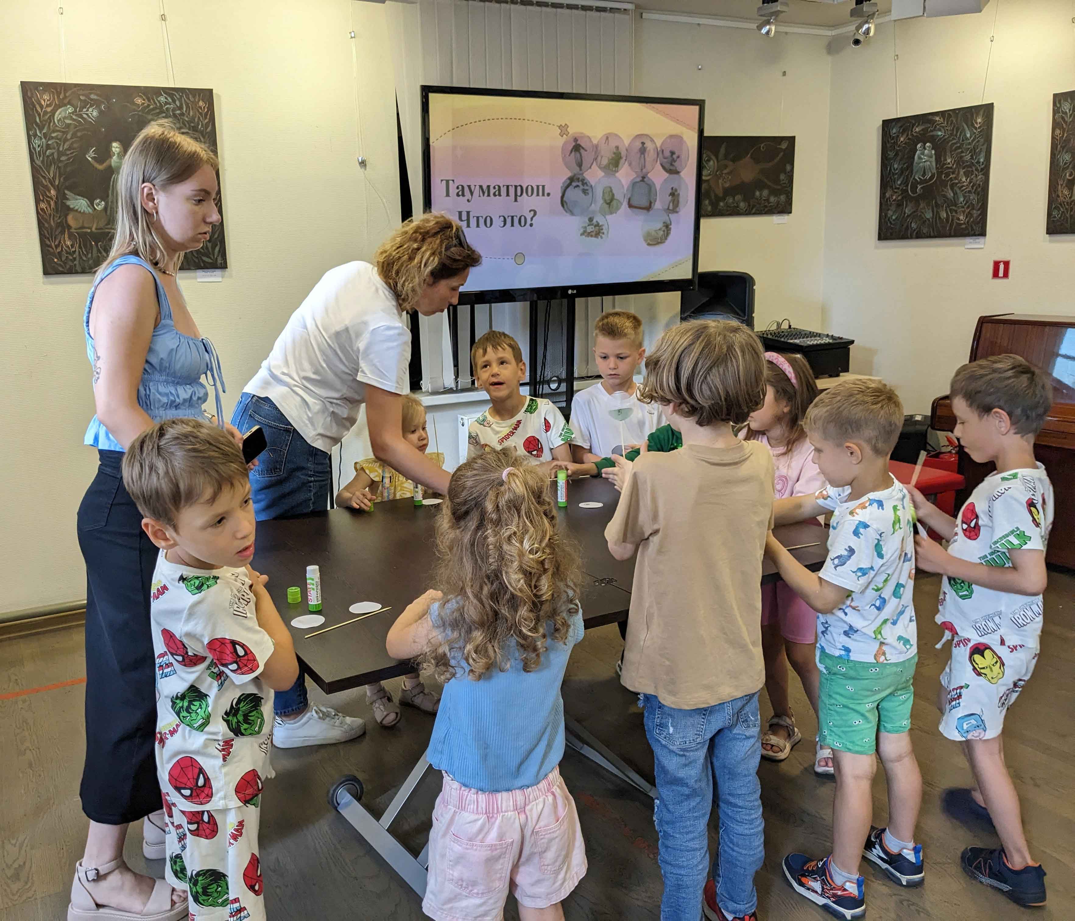 Завершилось мероприятие мастер-классом, на котором каждый участник смастерил свой тауматроп – игрушку-перевертыш с оптической иллюзией в основе. Принцип ее работы заключается в том, что при быстром вращении кружка с двумя рисунками, нанесенными с разных сторон, оба изображения воспринимаются как одно.