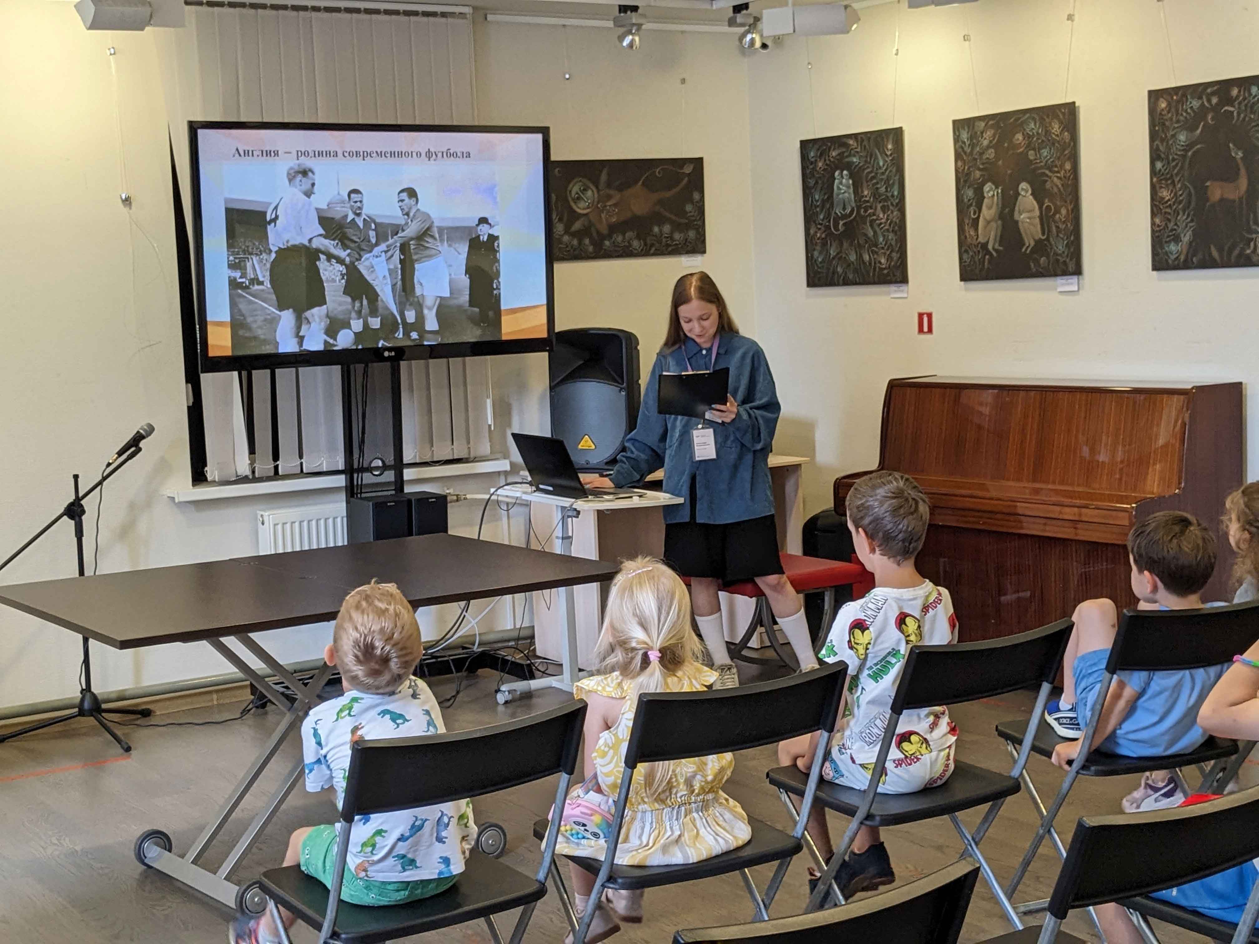 В ходе занятия ребята узнали много интересного из истории футбола, познакомились с разновидностями футбольных мячей, правилами игры и особенностями формирования команд. Повествование сопровождалось динамичной интерактивной презентацией.