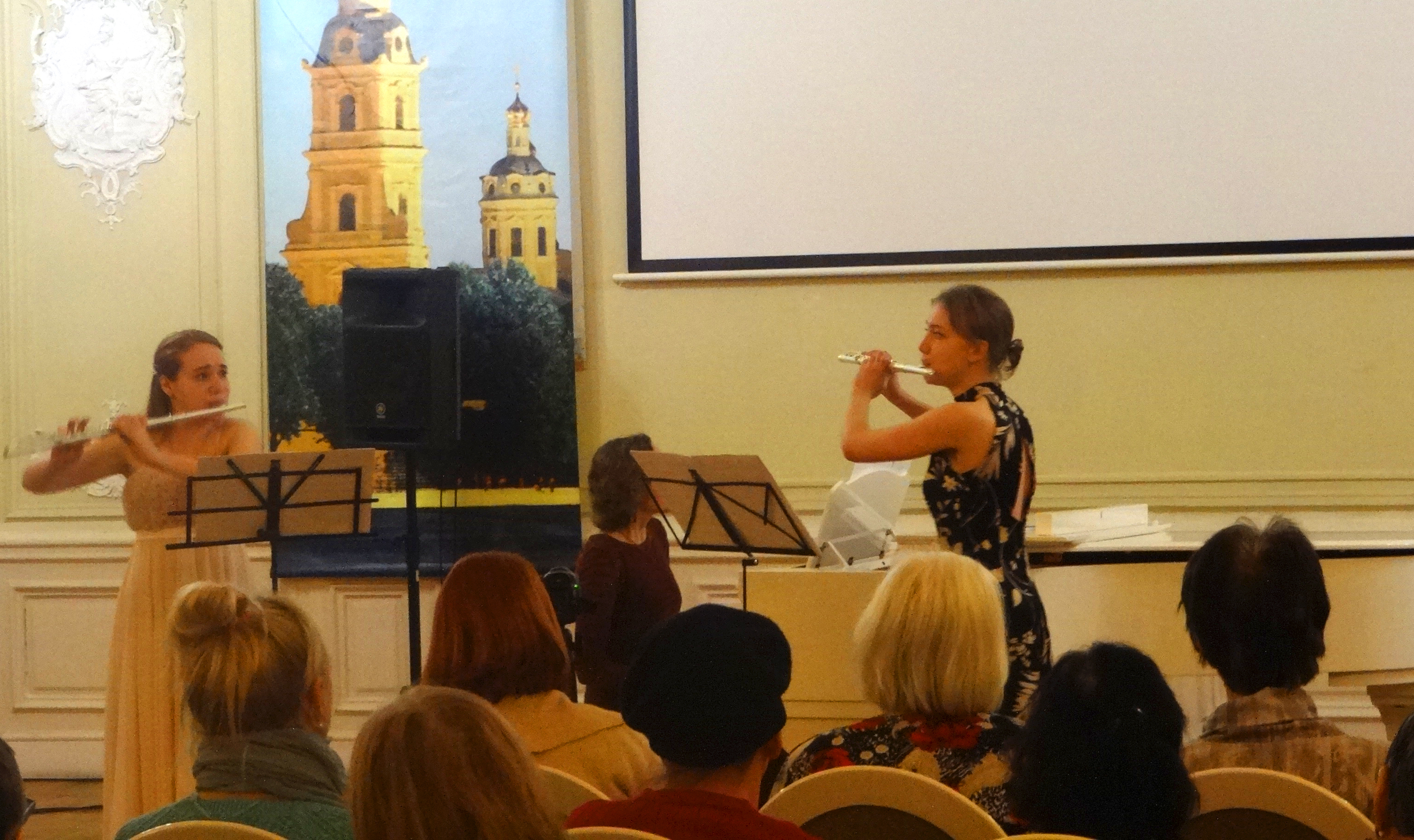В Белом зале Администрации Петроградского района состоялся традиционный предновогодний концерт студентов Санкт-Петербургской государственной консерватории им. Н.А.Римского-Корсакова по классу флейты заслуженной артистки России Ольги Чернядьевой. Декабрьские концерты флейтовой музыки, организованные Библиотекой им. Б.Лавренева, уже давно стали прекрасной традицией для любителей и ценителей классической музыки – читателей библиотек и жителей Петроградской стороны.