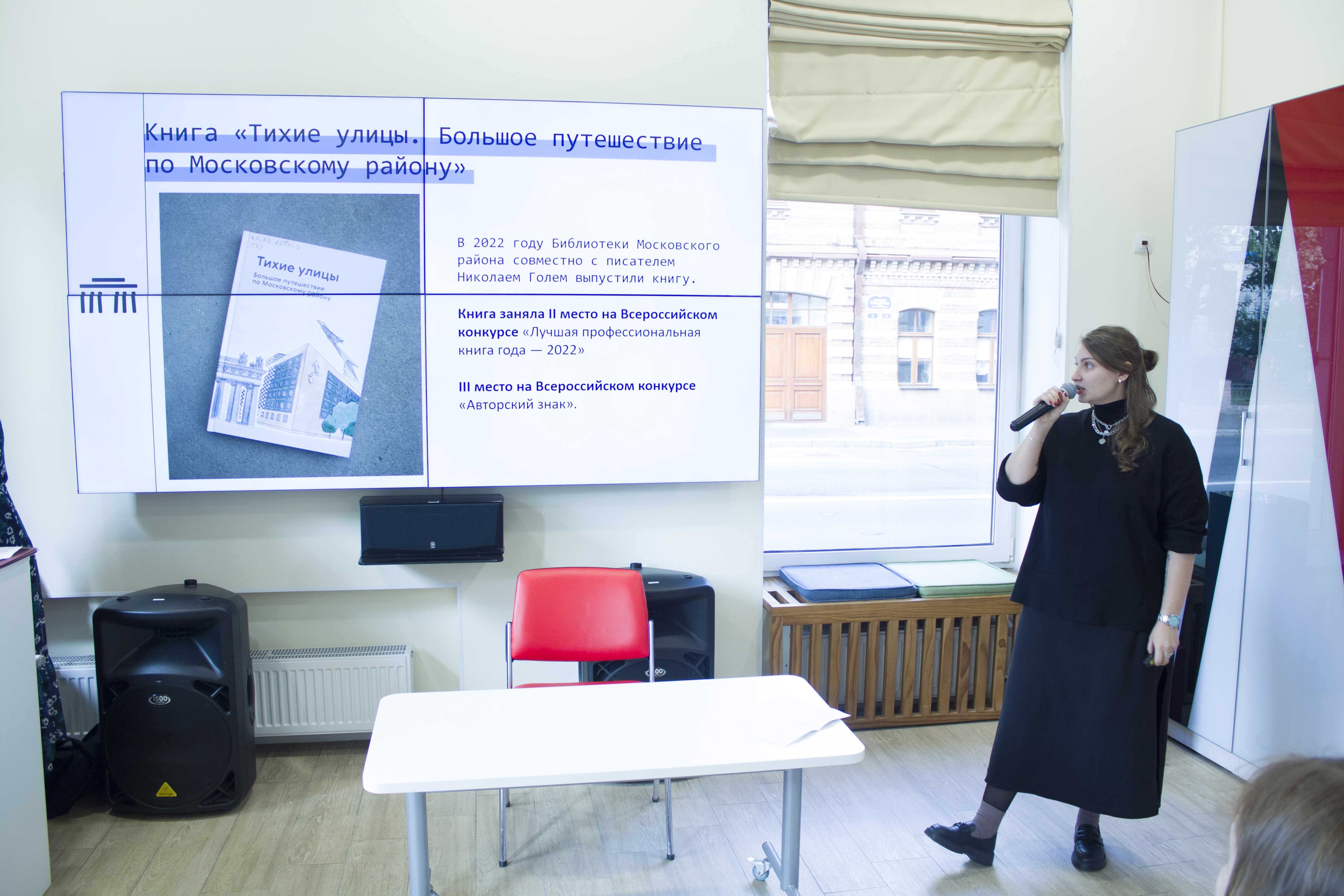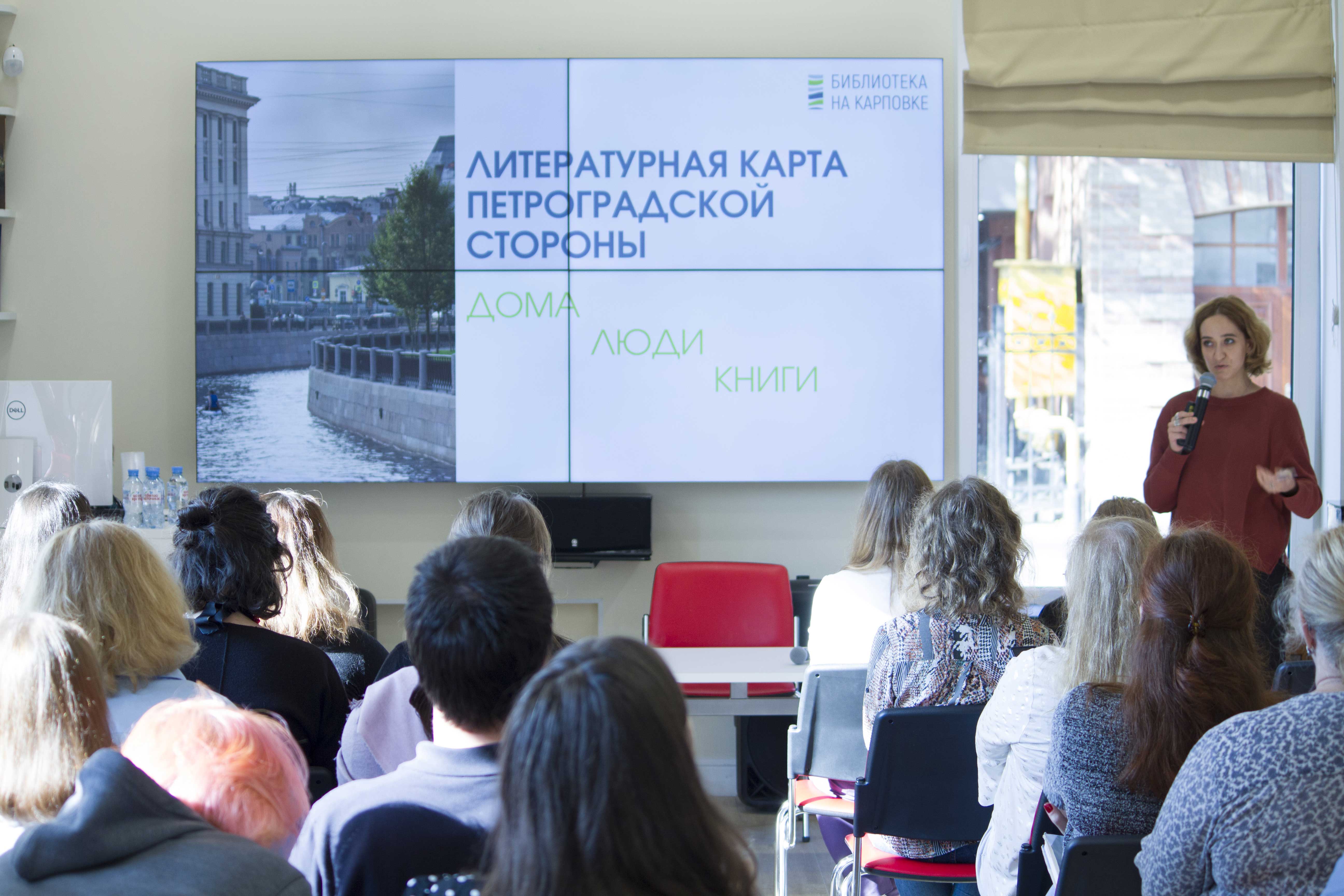 Оксана Юрьевна Малахова, заведующая отделом обслуживая Библиотеки имени Б. Лавренева, представила проект «Литературная карта Петроградской стороны», который объединяет в себе логичные и актуальные для библиотеки категории – книгу и локальную историю. Это проект визуализации городского текста и поэтизации маршрутов прогулок по городу. Собранная и переработанная информация становится материалом для создания прогулок и квестов, позволяет расширить список тем для сотрудничества с образовательными организациями.