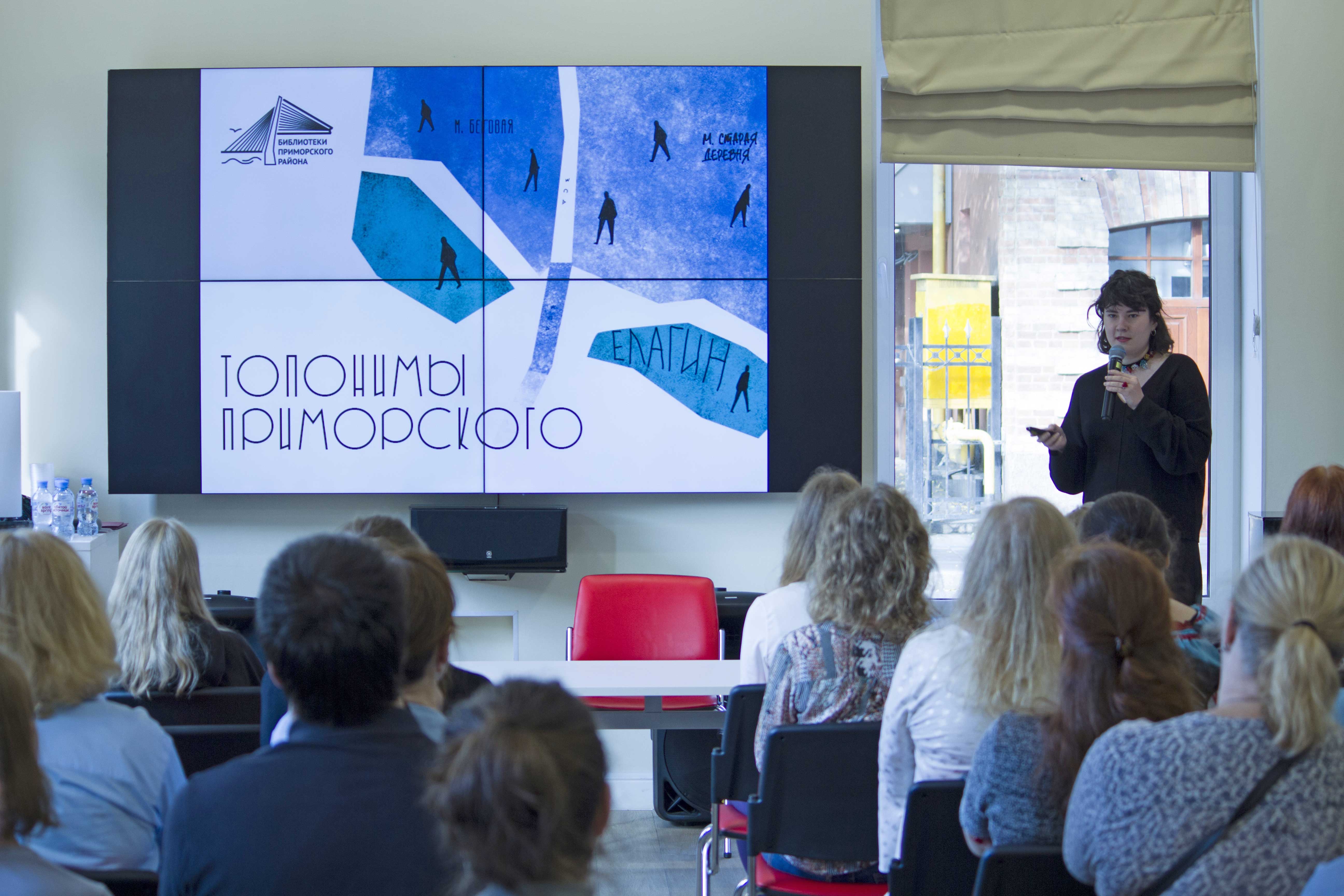 Маргарита Александровна Николаева, специалист по библиотечно-выставочной работе Централизованной библиотечной системы Приморского района, представила краеведческий проект «Топонимы Приморского», который предполагает сбор и изучение неофициальных топонимов – разговорных названий улиц, парков, торговых центров и других объектов.