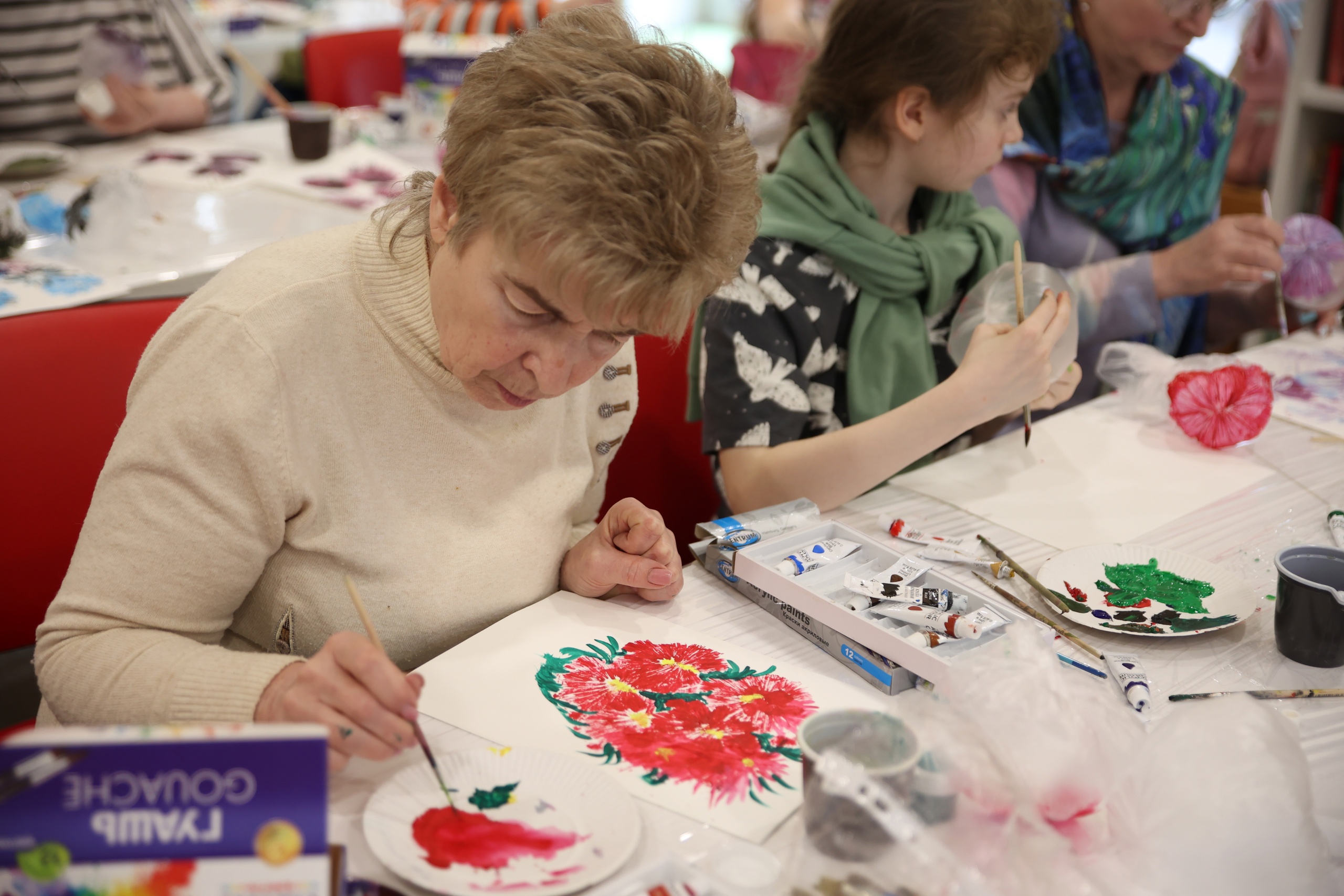 Еще одна встреча в библиотеке имени В.И Ленина в рамках Культурного тура была посвящена весне: на мастер-классе по абстрактному рисованию цветочной композиции «Весна идет, весне дорогу!» участники использовали в качестве инструмента обычные полиэтиленовые пакеты. Расцветающие на бумаге прекрасные букеты вызвали массу положительных эмоций у участников мастер-класса.