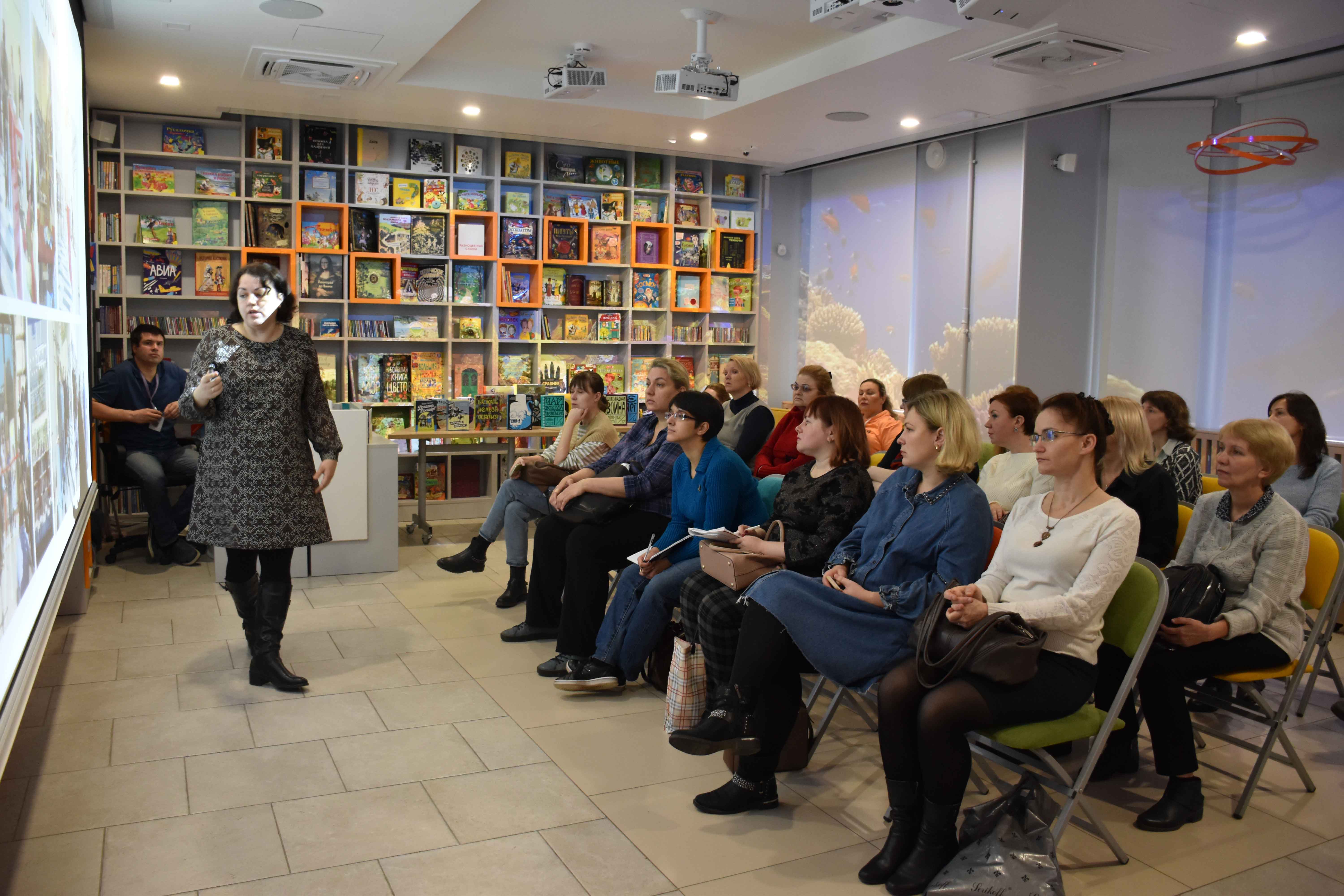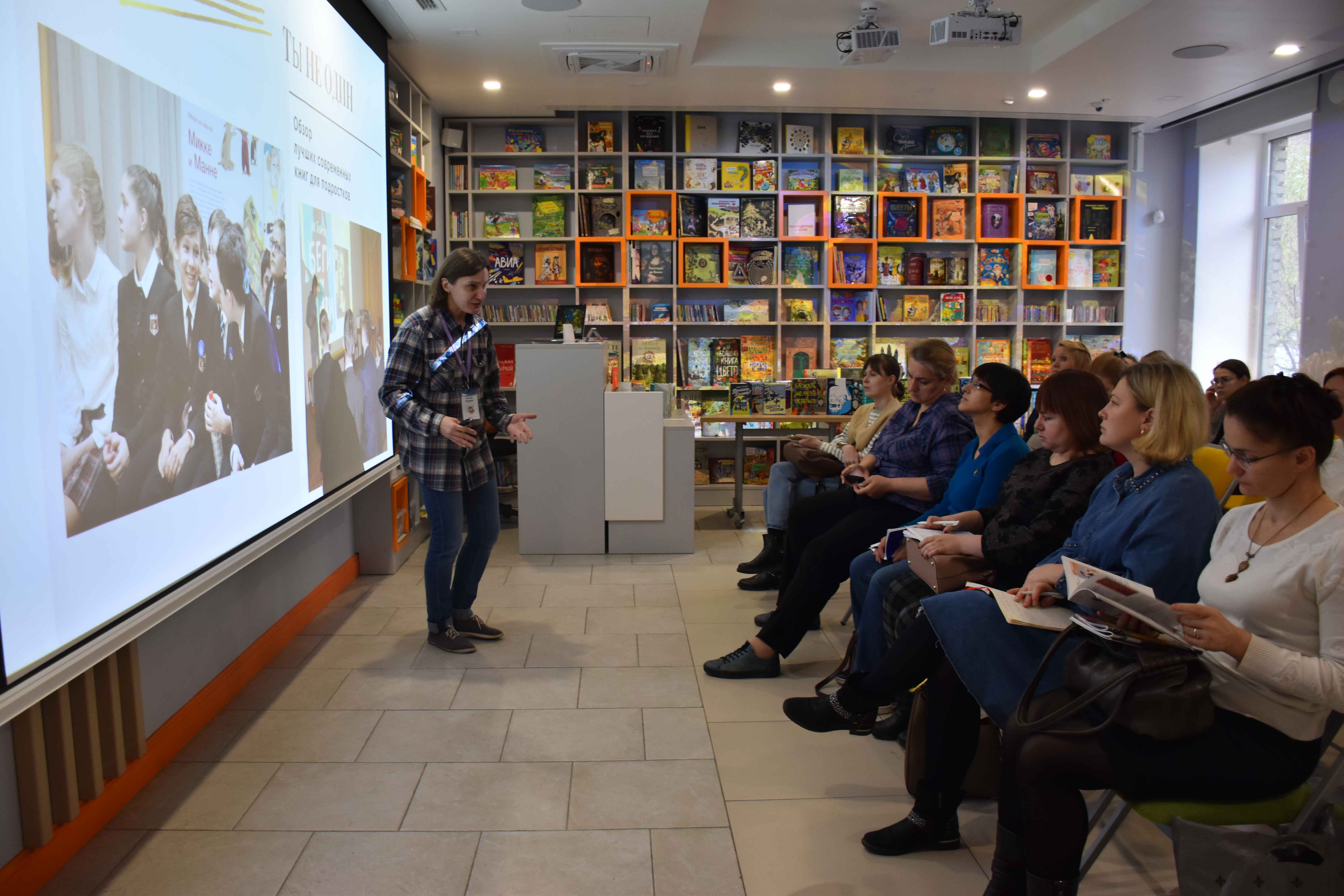 Далее слушателей ждала лекция «Библиотечные методы и приемы в работе с современной детской и подростковой литературой», которую подготовила библиограф Центральной районной детской библиотеки Татьяна Николаевна Шулаева. Для коллег был представлен опыт составления, издания и работы библиотеки с рекомендательными библиографическими пособиями. Татьяна Николаевна рассказала об антибуллиновом проекте «Я не верю в монстров» и о современной литературе о школе, тех, кто учится и тех, кто учит.
