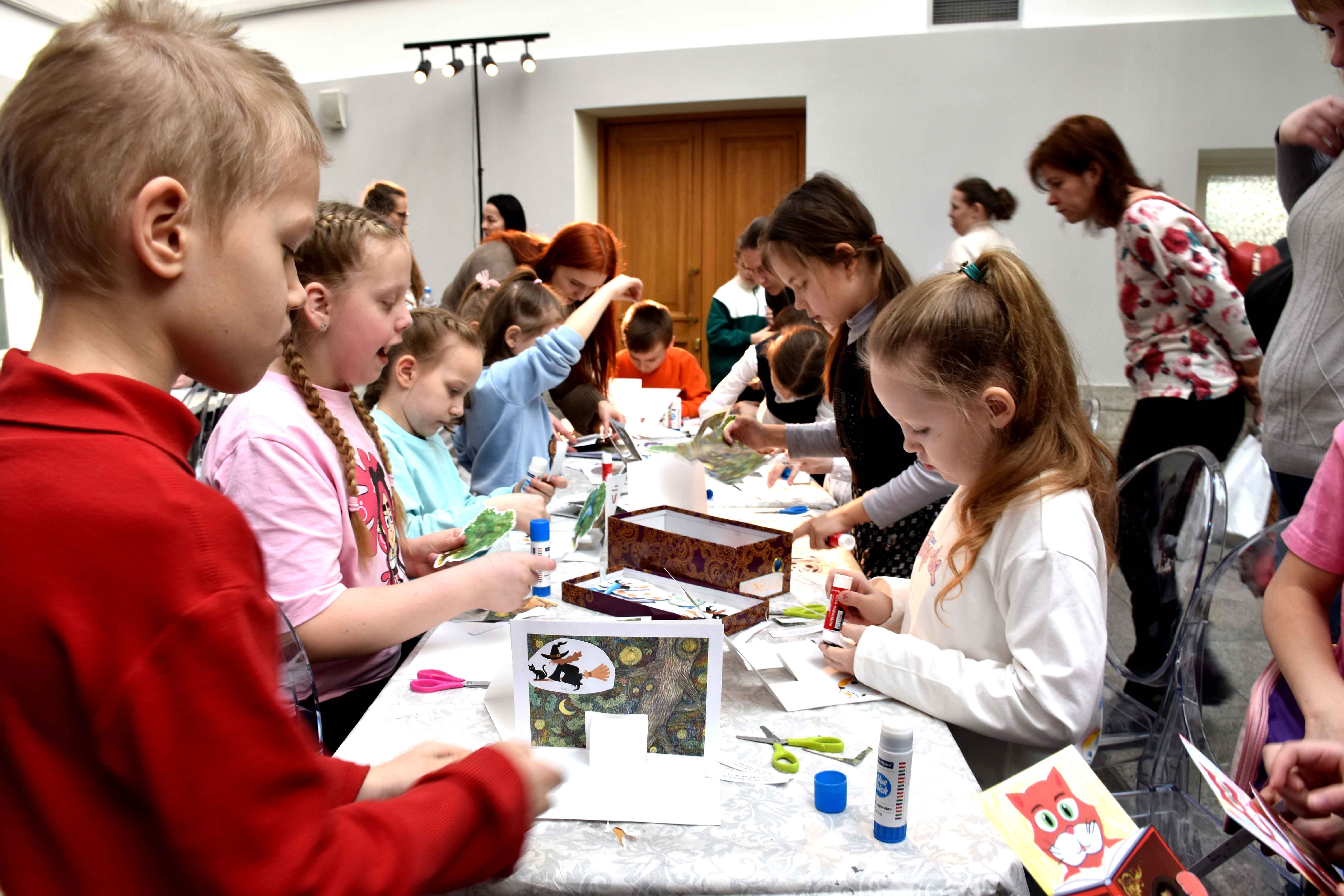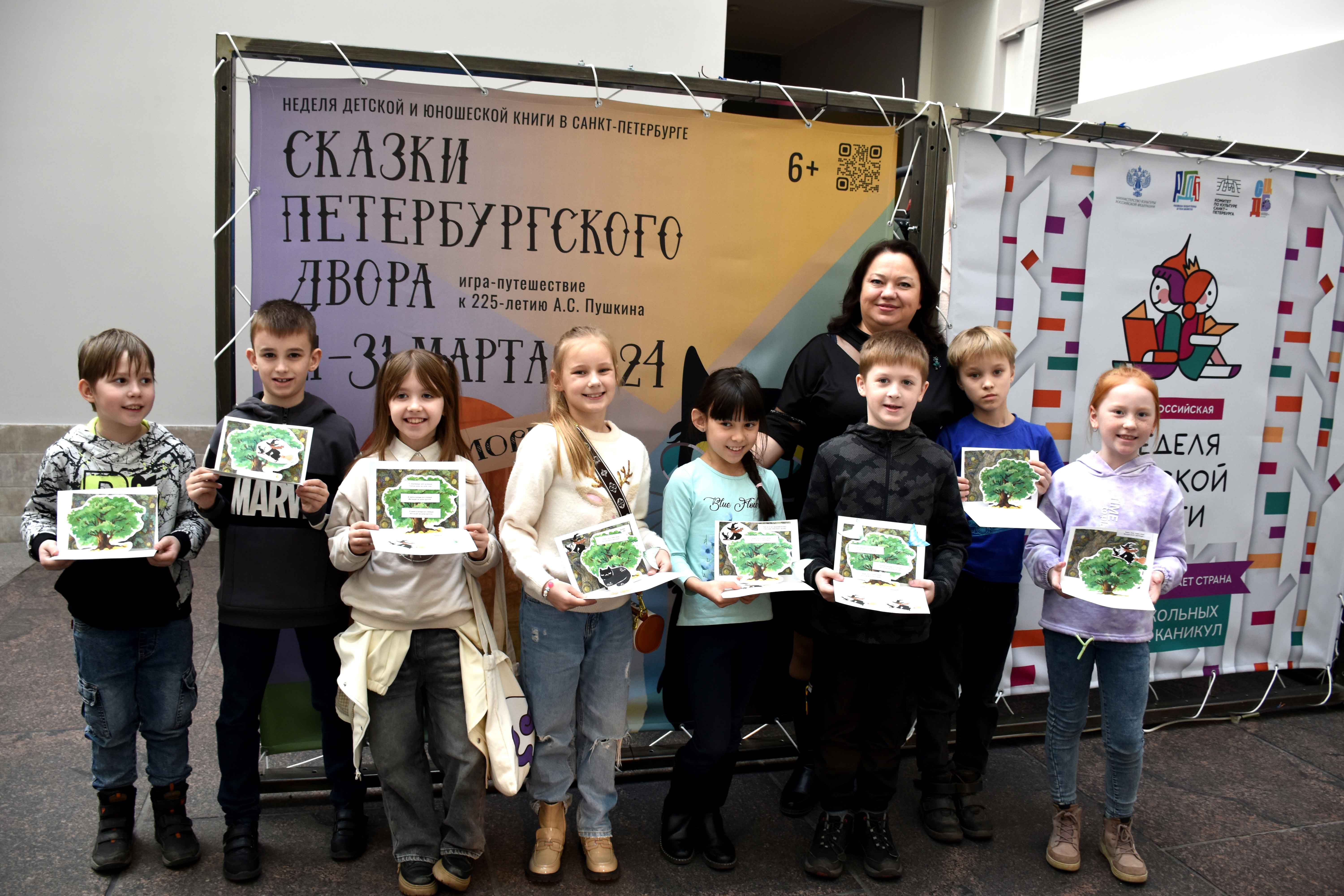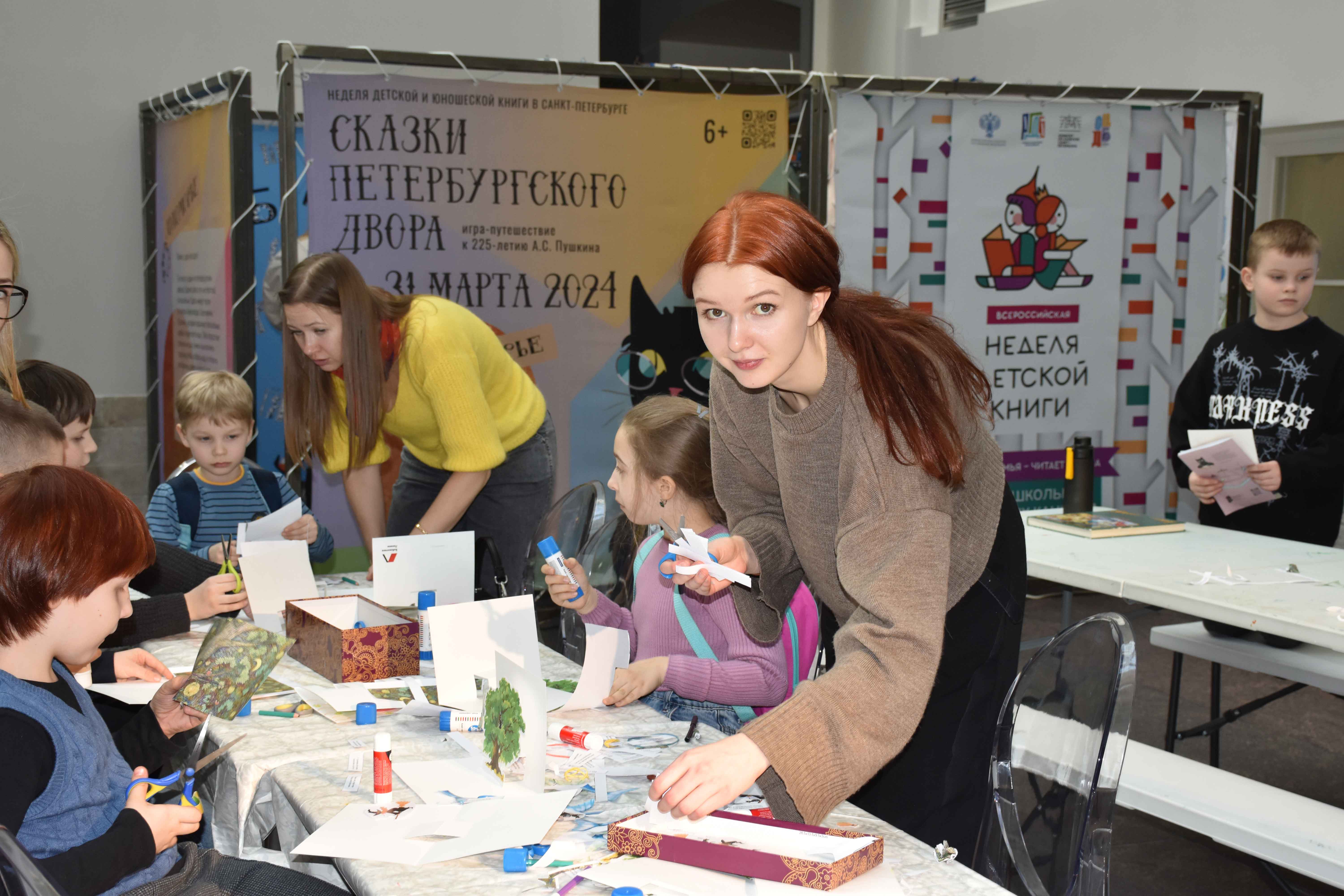 Библиотека имени В.И. Ленина (ул. Воскова, д. 2) тоже приняла участие в мероприятиях Книжкиной недели, которые в этом году посвящены одному из главных литературных событий 2024 года – 225-летию Александра Сергеевича Пушкина. Специалисты библиотеки имени В.И. Ленина провели в Главном штабе творческий мастер-класс по созданию панорамки «Лукоморье» по мотивам сказок Пушкина. Все панорамки получились очень разные, объединяло их лишь место действия – пушкинское Лукоморье и персонажи – ученый кот, Баба Яга, Кощей и другие. Дети вырезали, клеили, фантазировали, читали наизусть «У Лукоморья дуб зеленый...» и другие стихотворения Александра Сергеевича. На мастер-классе было создано более 60 сказочных панорамок.
