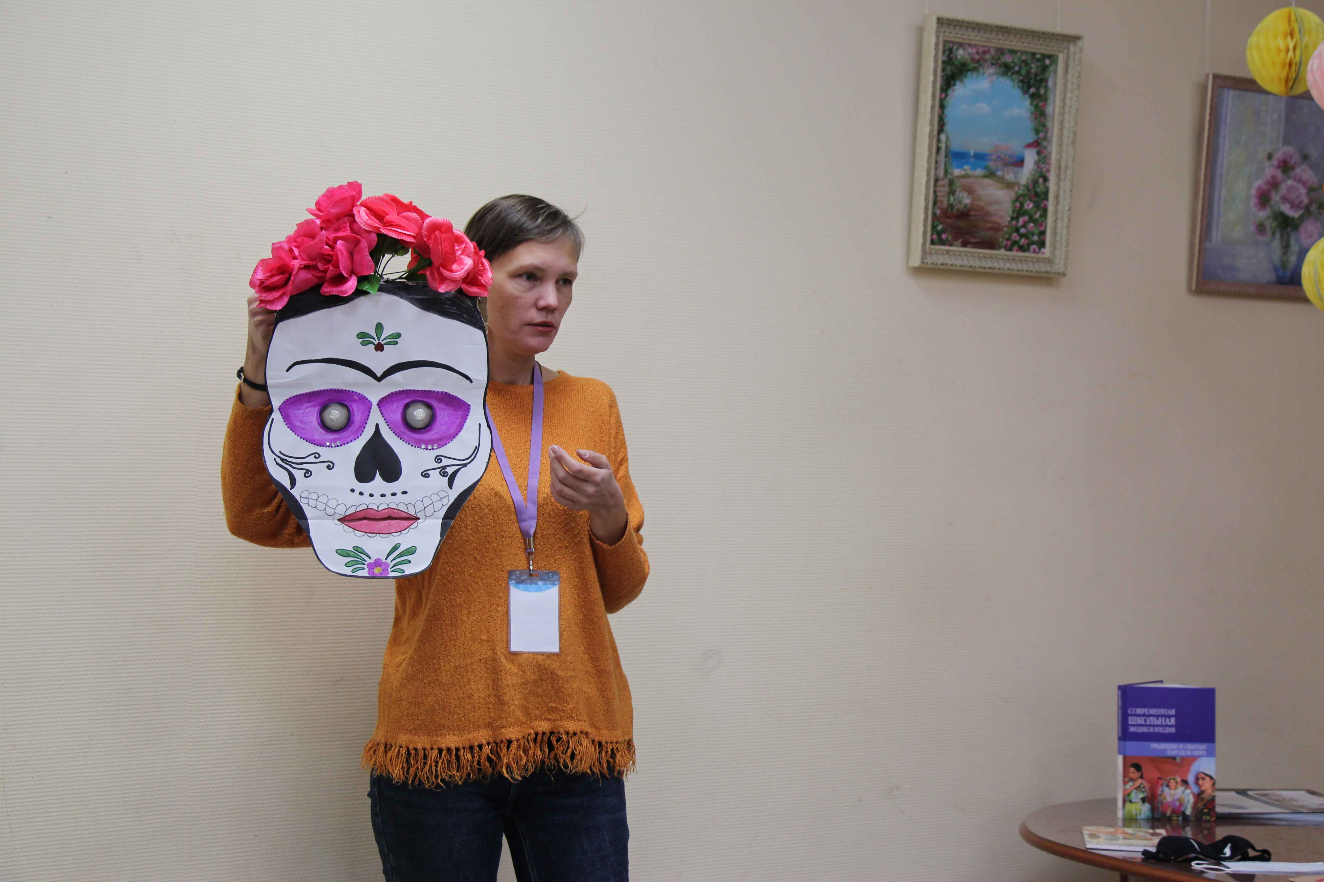 Взрослые и ребята вспомнили о театральных, медицинских и карнавальных масках, а также упомянули героев любимых комиксов, чьи лица часто скрывают маски. Когда же речь зашла о ритуальных масках, оказалось, что большинство присутствующих ассоциирует их со странами Африки. Каково же было их удивление, когда они узнали о том, что многие народы, населяющие нашу страну, тоже с древности используют маски во время проведения всевозможных ритуальных обрядов.