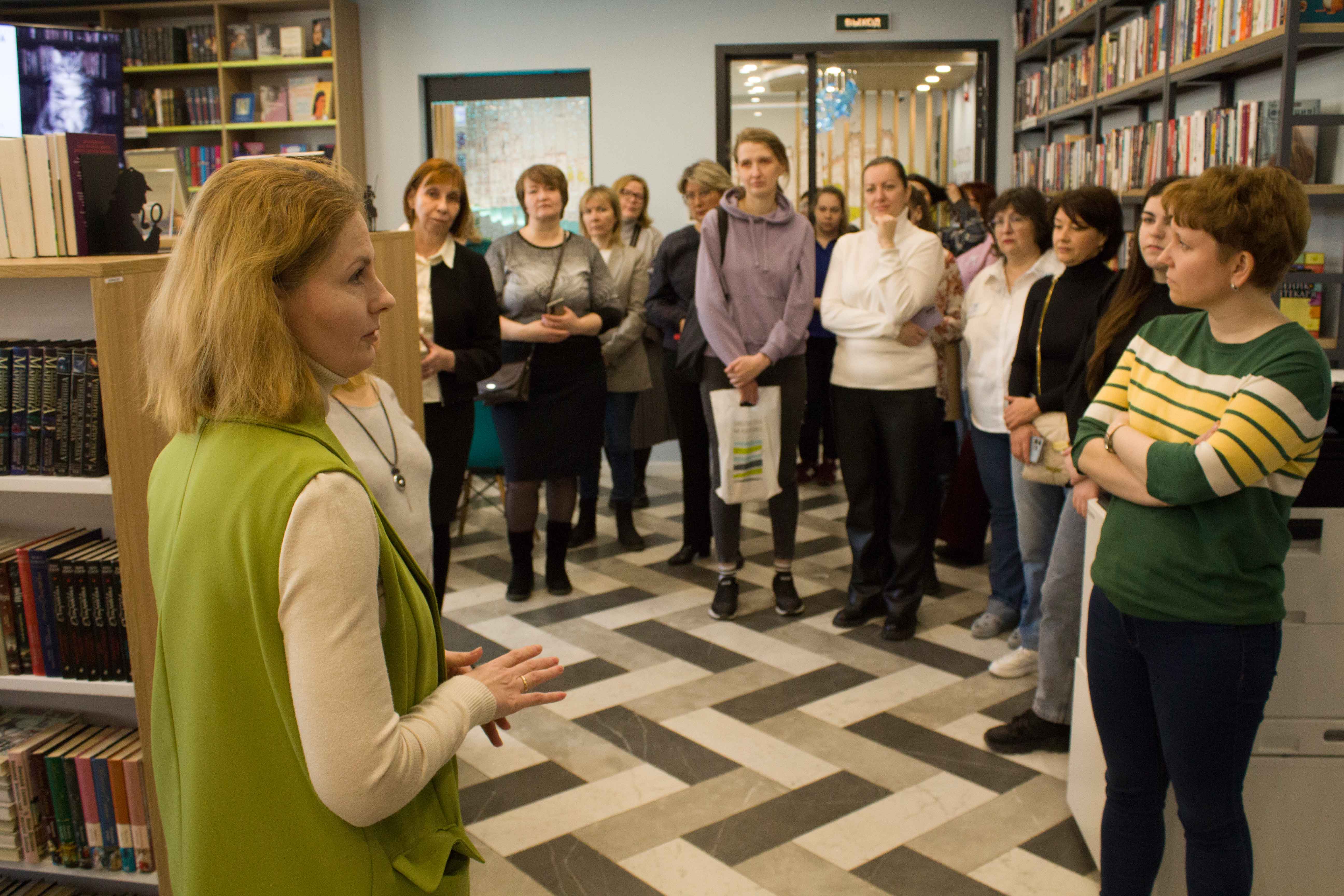 Горбачева Анна Сергеевна, заведующая Библиотекой на Карповке, провела для гостей экскурсию по обновлённому пространству, раскрыла этапы «перезагрузки» и ребрендинга библиотеки имени Б. Лавренёва, познакомила с формами работы и влиянием нового названия на все сферы жизни библиотеки.