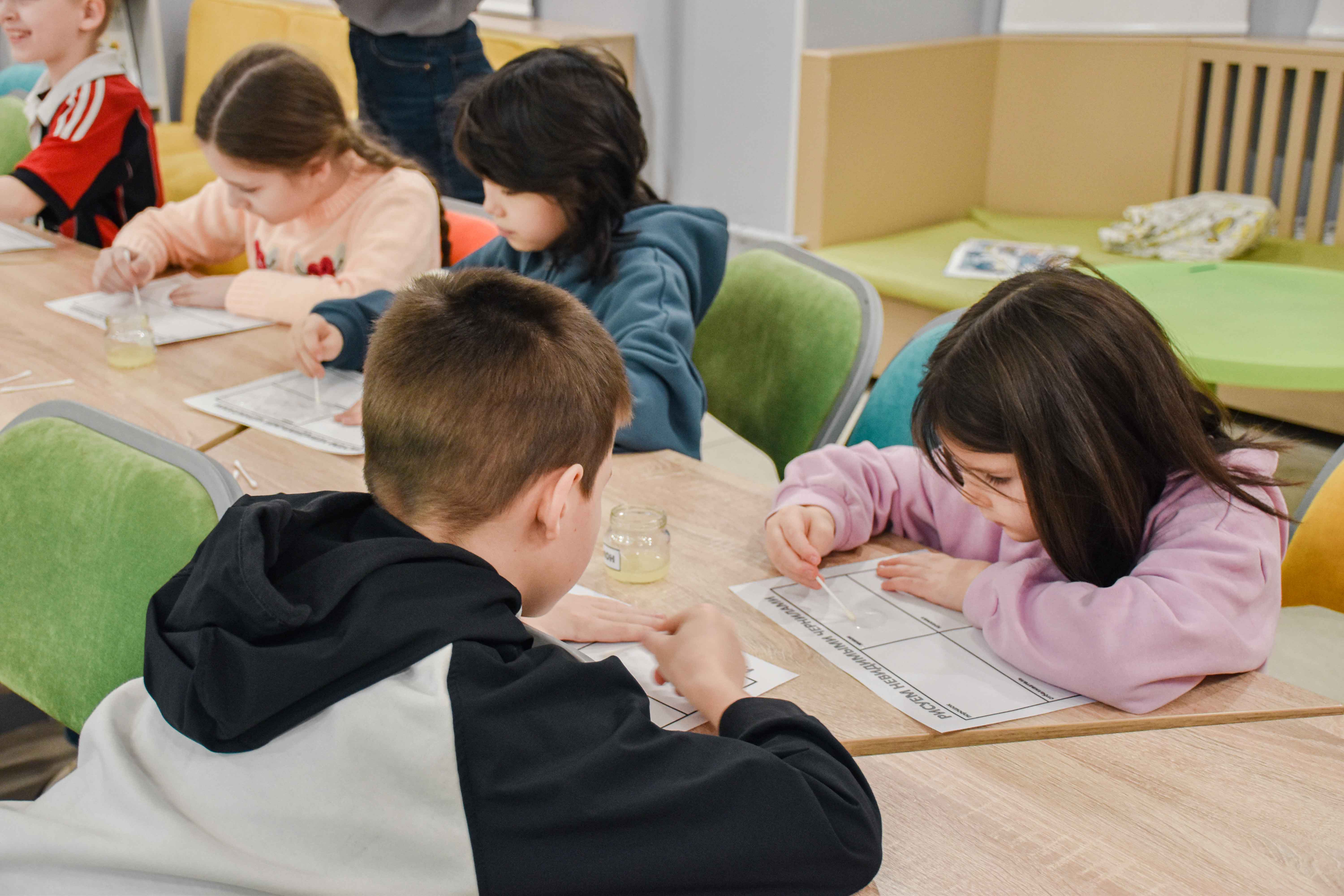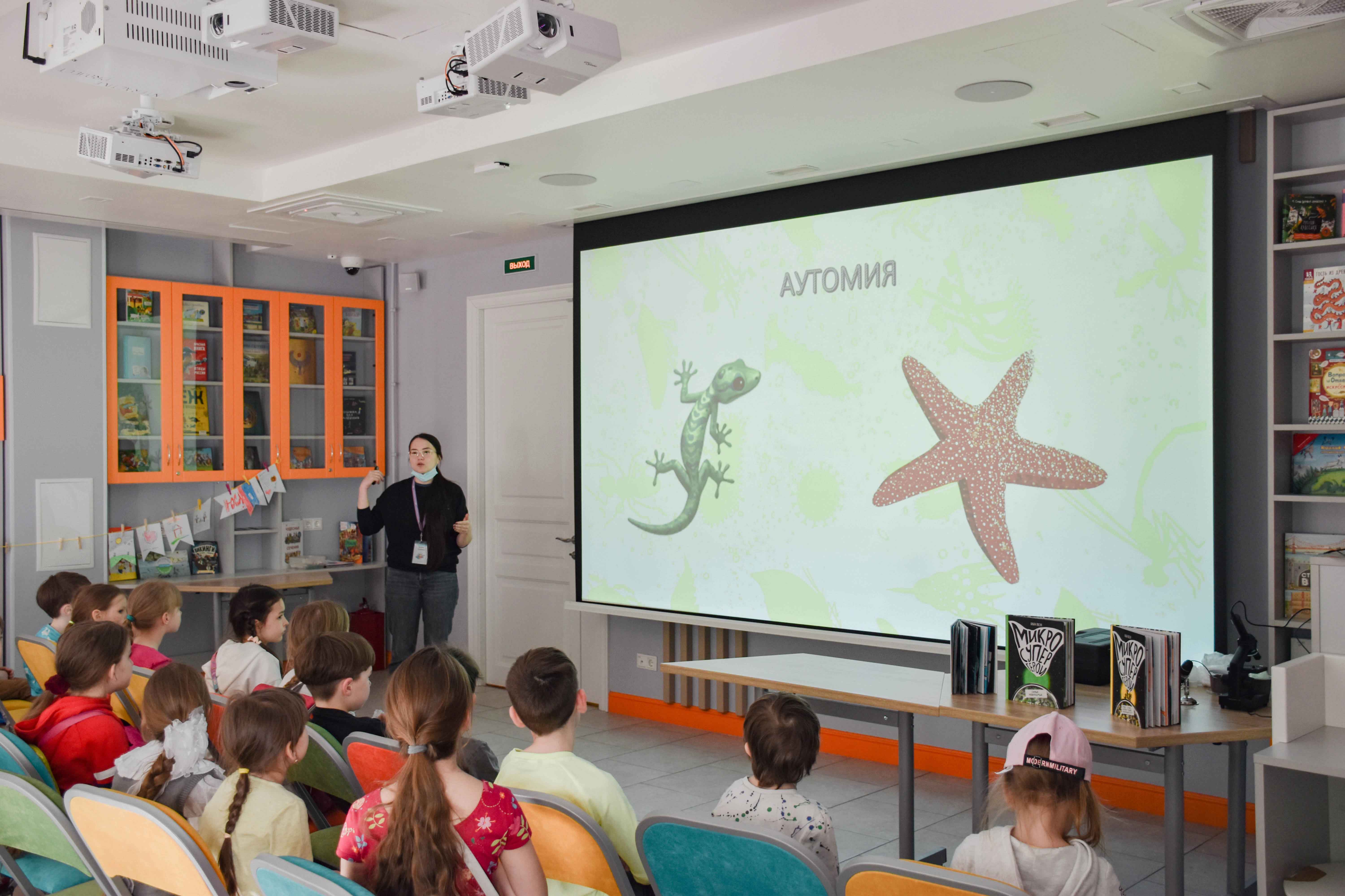 На занятиях дети познакомились с интересными животными, которых сложно различить невооруженным взглядом в обычной жизни. Размер самого живучего существа на земле, тихоходки, может достигать всего 0,5 мм, при этом ее практически невозможно уничтожить, этот вид пережил несколько массовых вымираний и даже смог выжить в открытом космосе без скафандра. Планарию можно разрезать на множество кусочков, и из каждого маленького кусочка восстановится полноценная особь. Её уровень регенерация просто поражает. А об организационных способностях муравьёв возможно слышали уже все, но огромное количество интересных фактов об этих созданиях побудило учёного-биолога и художника Ольгу Посух посвятить им целую книгу про самых умных микросупергероев, по ней тоже было проведено мероприятие. Дети с восторгом открывали для себя этот удивительный мир необычных способностей, о которых человек может только мечтать.