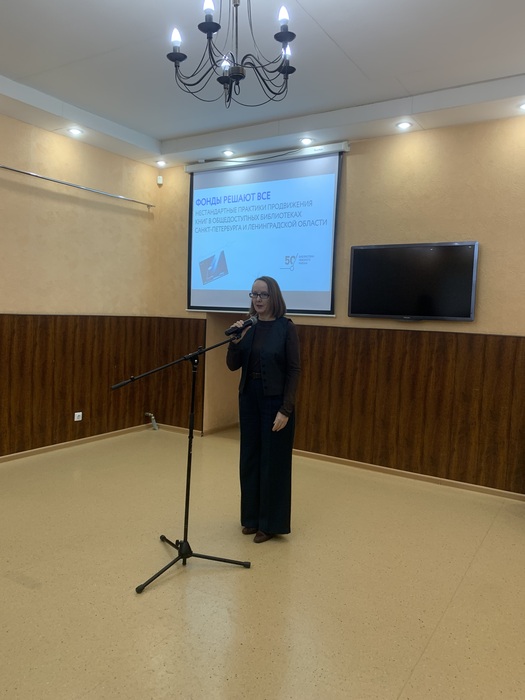 С приветственным словом к присутствующим обратилась директора Невская ЦБС Наталья Михайловна Ярцева. Она подчеркнула, что книжные фонды — это то, что определяет индивидуальность библиотеки как культурной институции. И хотя год от года растет число посетителей библиотек, которые приходят в них как участники культурно-досуговых мероприятий, а не затем, чтобы взять книги, работа с фондами — корневая обязанность библиотек, а продвижение книг и чтения — основная задача.