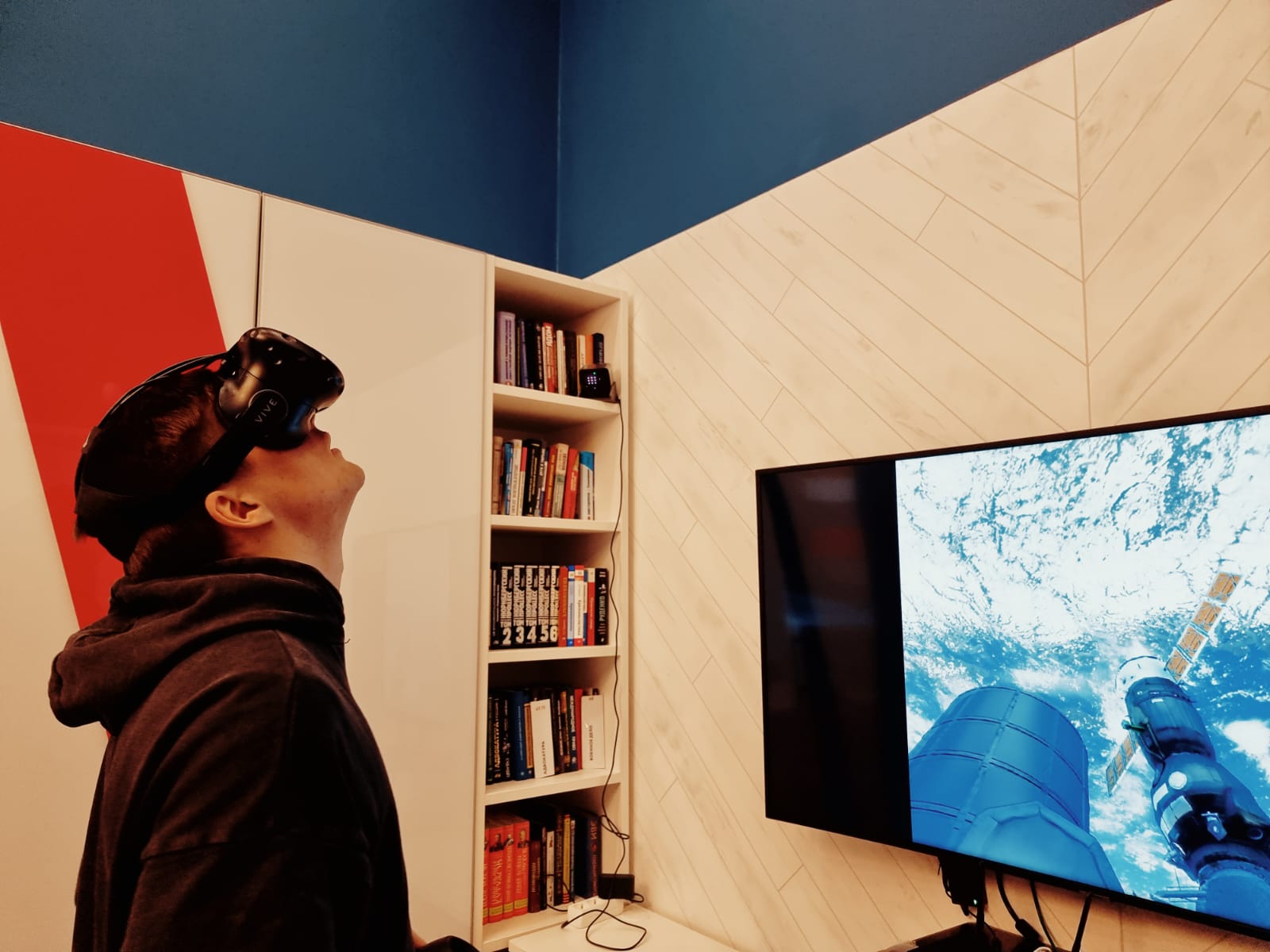 Высокотехнологичной частью программы была возможность воспользоваться системой виртуальной реальности для прогулки по Санкт-Петербургу Петра I, а также изучения разных областей знаний: анатомии, географии, искусства и даже…выхода в открытый космос!