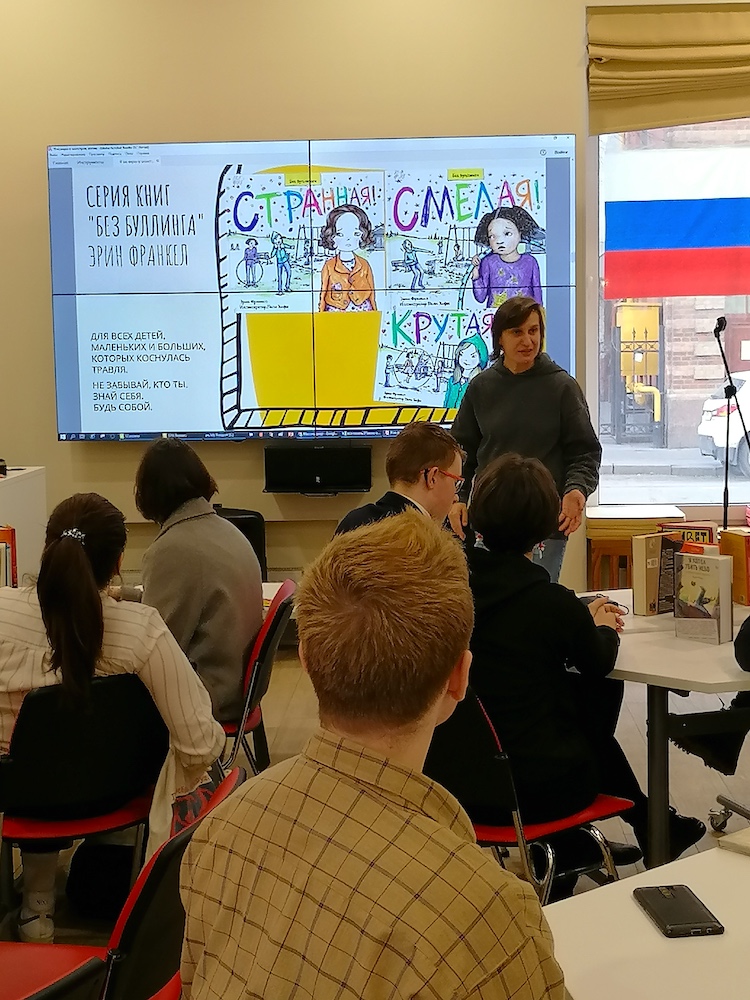 Во второй день семинара к нам присоединились спикеры из Центральной районной детской библиотеки (Большой пр. ПС, д. 65). Библиограф Татьяна Шулаева рассказала о межрайонном проекте «Я не верю в монстров», посвященном профилактике проблемы травли в детско-подростковых коллективах. Педагоги Дома детского творчества Центрального района Санкт-Петербурга «Фонтанка-32», руководитель театральной лаборатории «Диаметр» А. В. Янович и режиссер В. А. Тужилин, поделились опытом организации театральной лаборатории и провели тренинг «Как подготовиться к роли за полчаса». Эти знания наверняка пригодятся молодым педагогам в работе с временным коллективом детей.