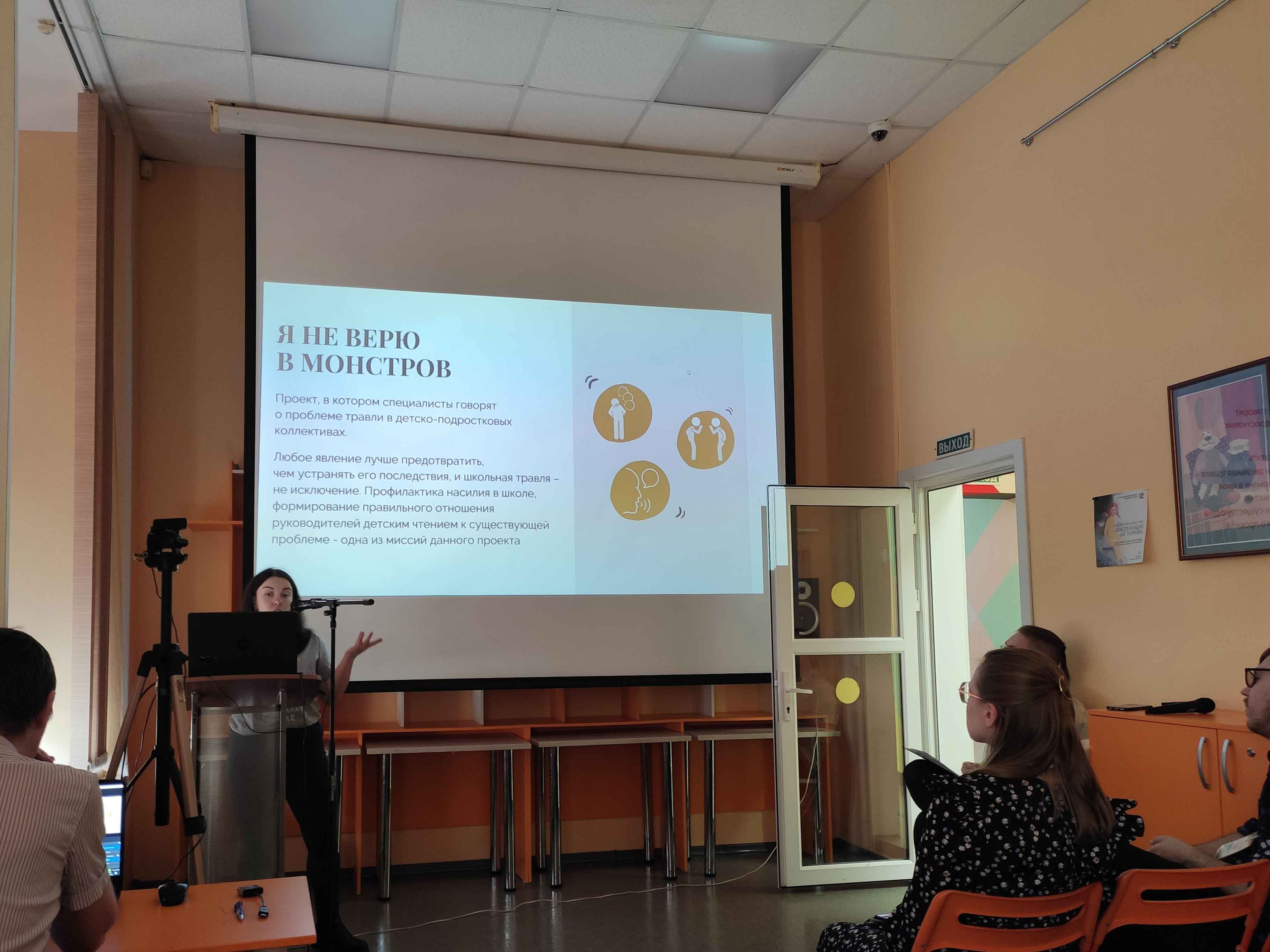 В рамках мероприятия был представлен опыт работы Центральной районной детской библиотеки над проектом «Я не верю в монстров», посвящённом проблеме травли в детских и подростковых коллективах. Тема оказалась достаточно актуальной для коллег и вызвала большой отклик, а рекомендательный указатель, выпущенный в рамках проекта, был взят в работу представителям различных библиотек Республики Коми.