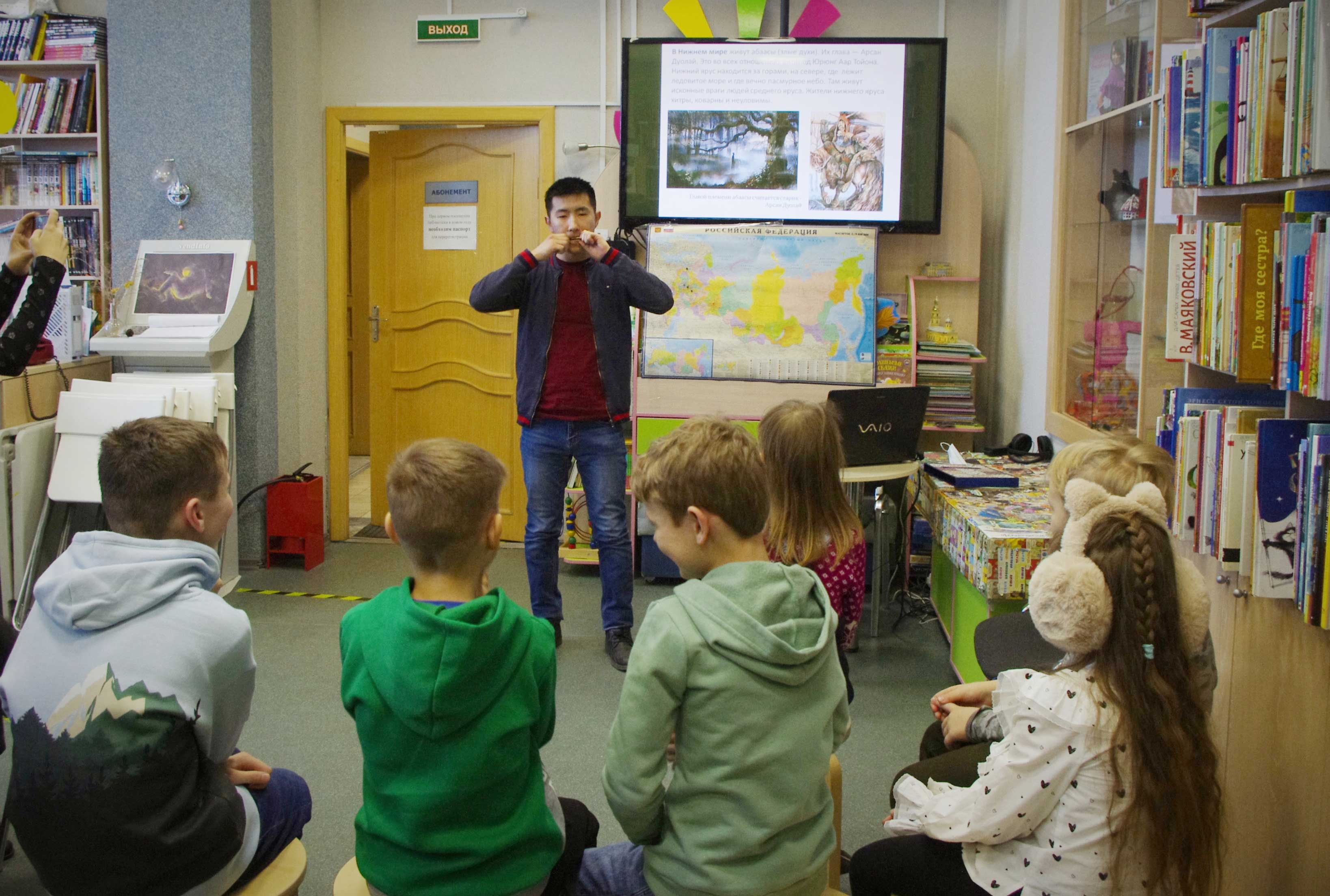 16 апреля в библиотеке на Троицкой площади (3-й районной) прошло детское интерактивное занятие «Сказки земли Олонхо» в рамках Года культурного наследия народов России. Занятие было посвящено культуре и эпосу якутского народа – народа, населяющего самый большой по площади регион Российской Федерации – республику Саха (Якутию).