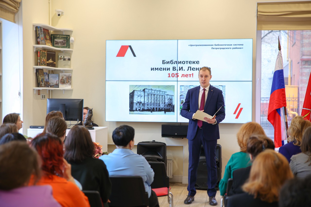 В 2025 году библиотека имени В. И. Ленина отмечает своё 105-летие, заместитель главы администрации Петроградского района Максим Александрович Аршинов поздравил коллектив библиотеки юбилеем, вручил благодарность за многолетнюю эффективную работу и значительный вклад в развитие культурной сферы района.