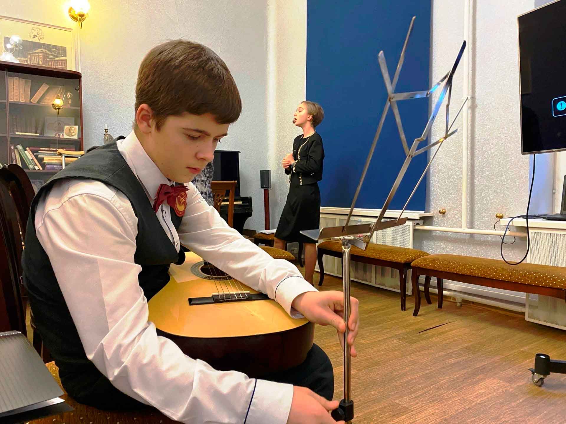На концерте преподаватели и ученики исполнили произведения композитора.Акчурина Алия и Акчурин Дамир на фортепьяно сыграли Гопак из оперы "Сорочинская ярмарка". Пьесу «Прогулка» из цикла «Картинки с выставки» исполнил сольно на акустической гитаре Павел Кондрахин. Фортепианные пьесы "Прогулка", "Гном", а так же произведения "Кот матрос" и "Над рекой" исполнила педагог по вокалу Пузакова Анастасия Алексеевна. Павленко Елизавета и Туркина Виктория исполнили песни "В угол" и "С няней" из цикла "Детская".
