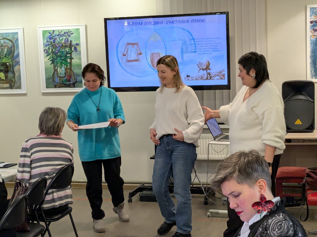 Ведущая мастер-класса, стилист Анна Гольтяева уверена: одежда — это письмо миру. И только от человека зависит, каким будет «текст» этого письма. Для того, чтобы максимально выразить себя в деталях гардероба, присутствующие учились сочетать цвета в одежде, работать со своим уровнем контрастности и определять цветотип.
