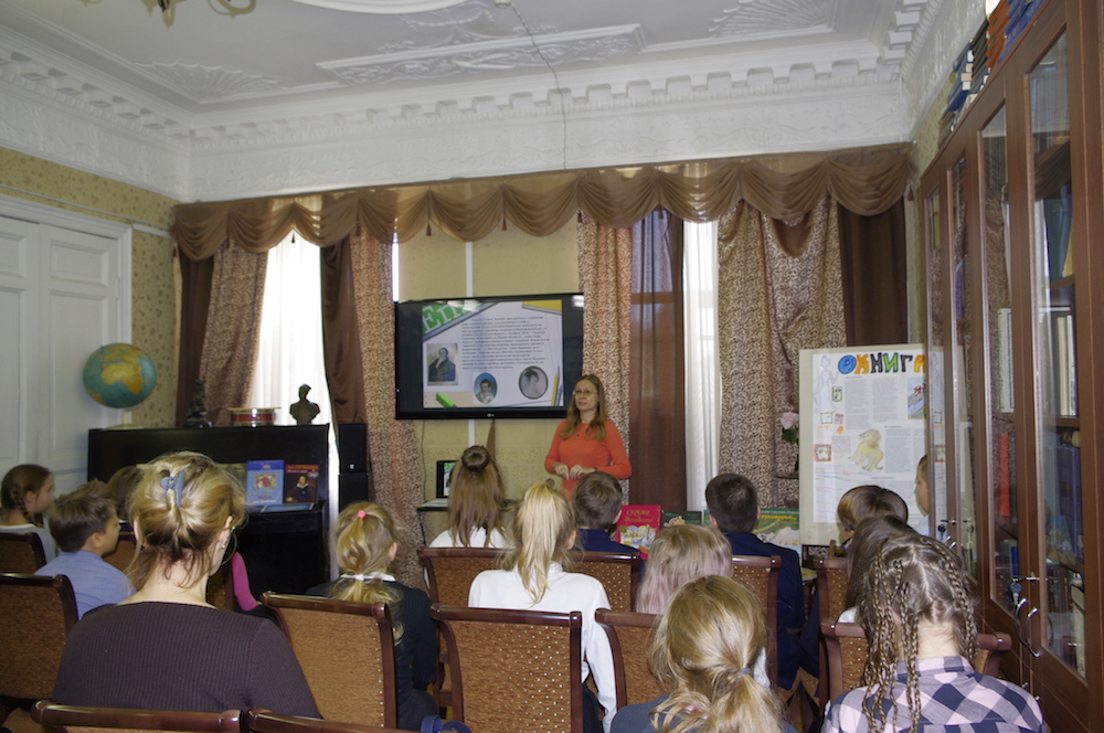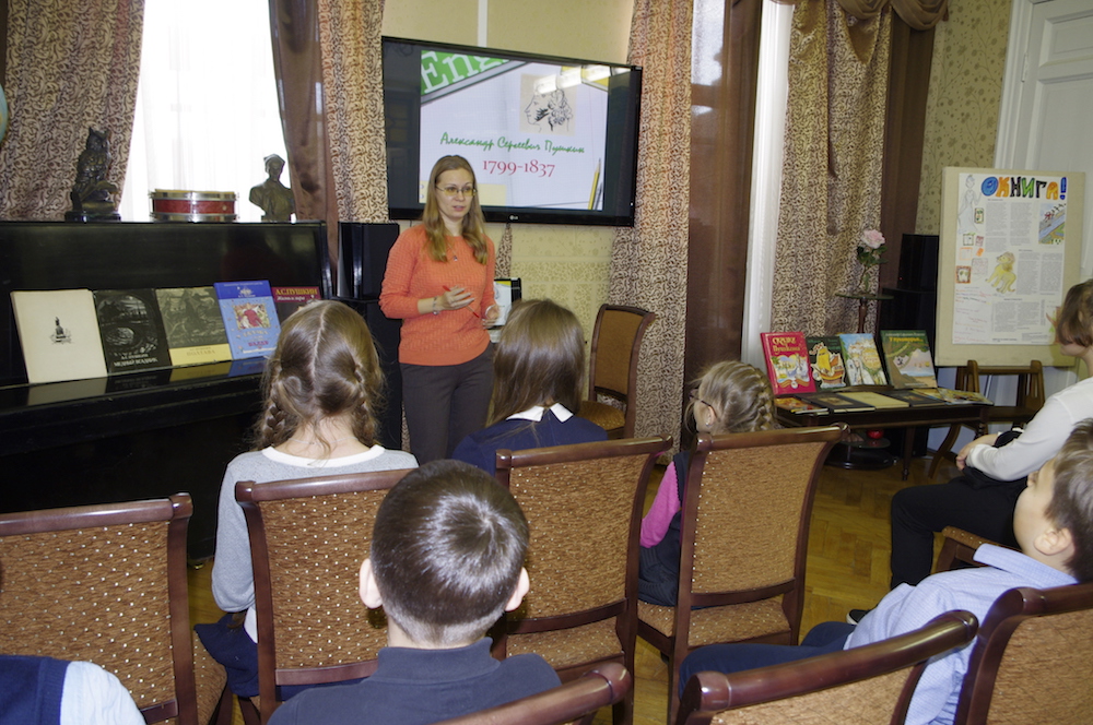 25 октября в Юношеской библиотеке им. А. П. Гайдара (Большой проспект П. С. д. 18) прошло занятие для учащихся 5 класса 77 школы, посвященное творчеству великого русского поэта. Занятие прошло в рамках программы «Чтение лучшее развлечение». Мы побеседовали о детстве и юности А. С. Пушкина, о его няне Арине Родионовне, привившей ему любовь к сказкам. Дети с удивлением разглядывали родовой герб Пушкиных и с интересом слушали про жизнь юного поэта в Лицее – учителях, уроках, друзьях и стихах, написанных за годы учебы. Вместе с Пушкиным мы побывали в Бахчисарае, на юге России, в Болдино и в селе Михайловское. Поговорили о том, как Пушкин жил и работал в ссылках. Вспомнили о роли декабристов в жизни писателя, не забыв и прекрасную жену Наталью Гончарову. Дети с волнением слушали рассказ о трагической смерти писателя, познакомились и подержали в руках газеты и журналы, выпущенные к 100-летию со дня смерти поэта в 1937 году.