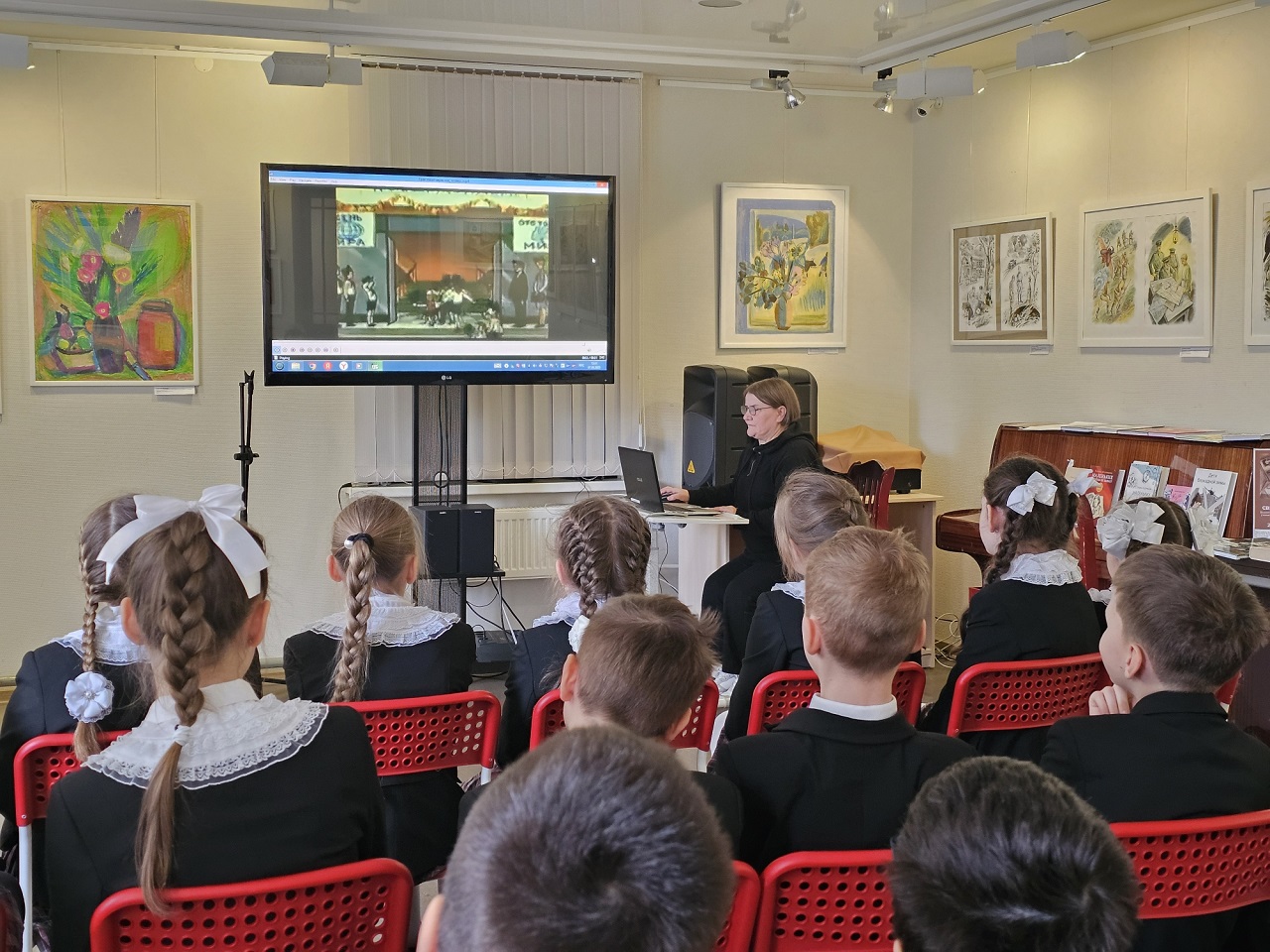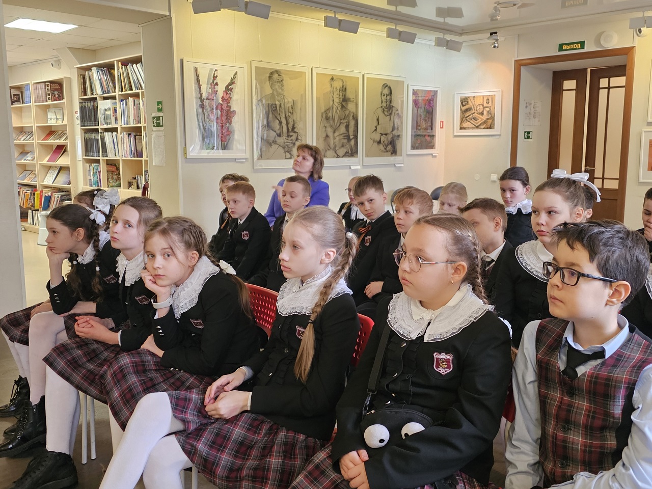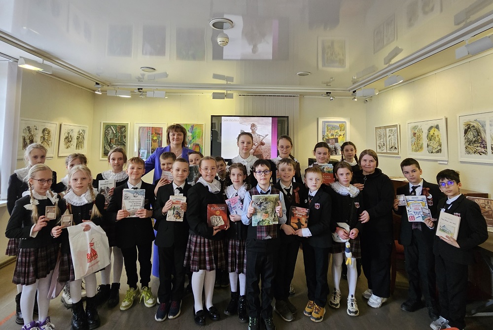 В библиотеке Кировских островов (Кемская ул., 8/3) для третьеклассников гимназии №56 Петроградского района прошла интерактивная программа «Мы были рождены не для войны», посвященная 80-летию Победы в Великой Отечественной войне и приуроченная к Году защитника Отечества в Российской Федерации.