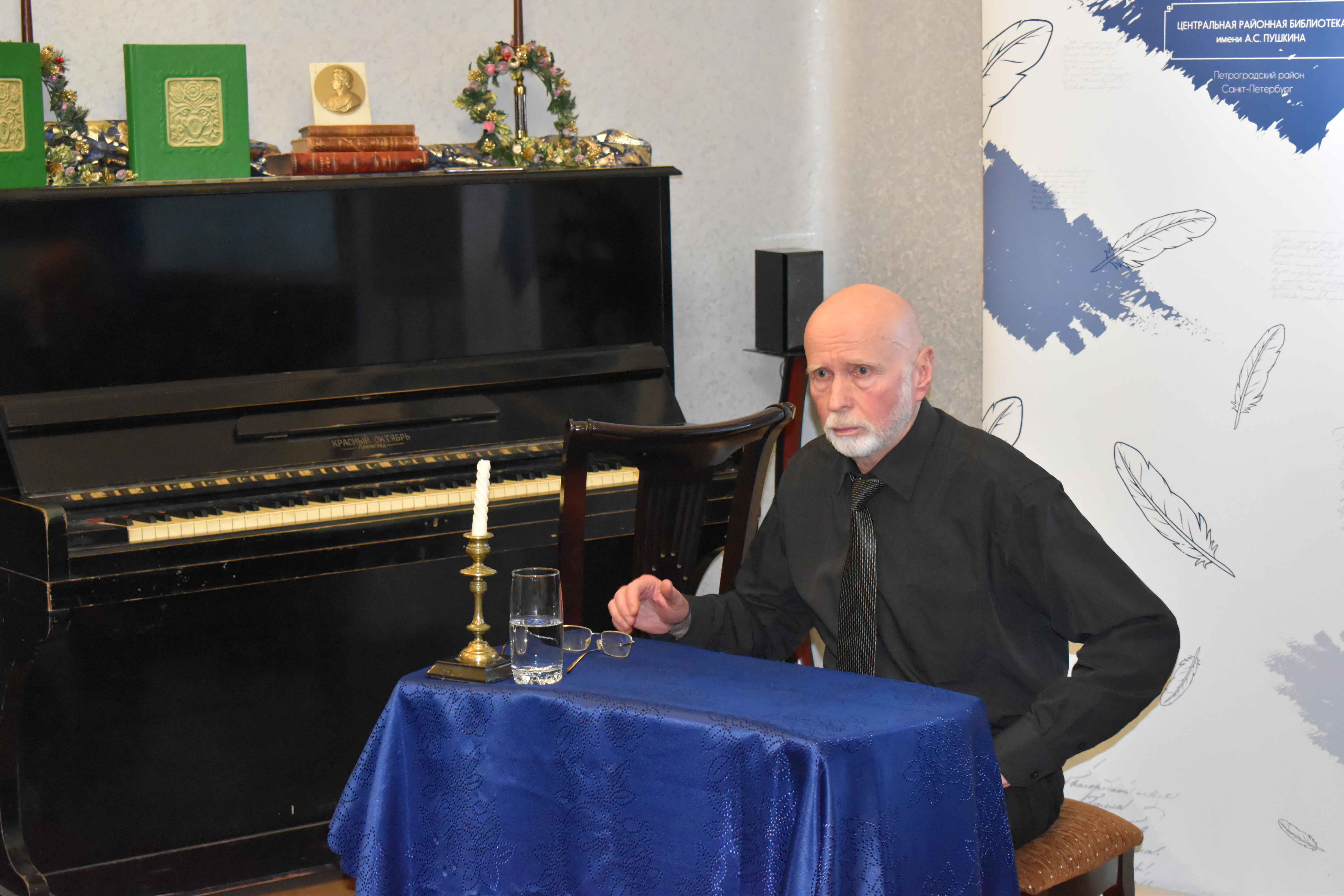 Более взрослые читатели посетили моноспектакль «Моцарт и Сальери». Постановка на основе "Маленькой трагедии" А.С. Пушкина и музыки Реквиема В.А. Моцарта была исполнена петербургским чтецом и музыкантом Николаем Новиковым. Предложенное театрализованное чтение драмы А.С. Пушкина в авторском звуковом оформлении создало особую атмосферу в Литературной гостиной библиотеки.