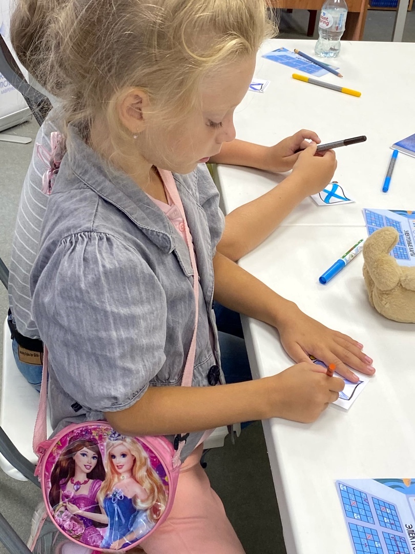 Благодаря книгам «Азбука кораблей» А. Беслика и «Про детство на кораблях» Е. Борисовой юные участники встречи узнали основные факты из истории Российского флота и главных флотских традициях, нарисовали Андреевский флаг и вспомнили историю его появления как главного символа Российского флота, попробовали разобраться в видах кораблей, и даже научились понимать значение сигнальных флагов. А в завершении встречи каждый смастерил своими руками поделку в технике оригами — кораблик с личными сигнальными флажками.