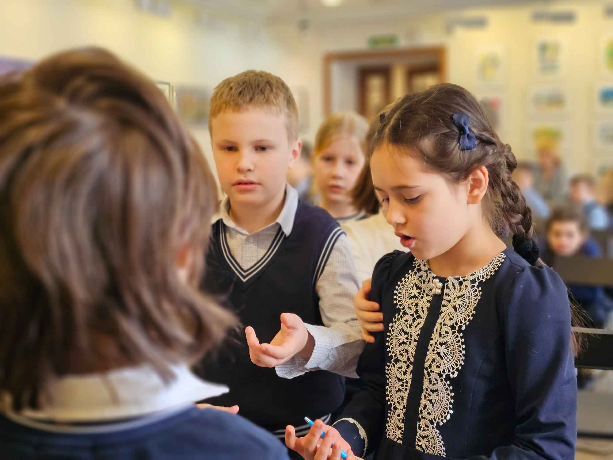 В библиотеке Кировских островов (Кемская улица, 8/3) школьники младших классов школы № 99 Петроградского района приняли участие в интерактивной программе, посвященной народным и авторским сказкам.