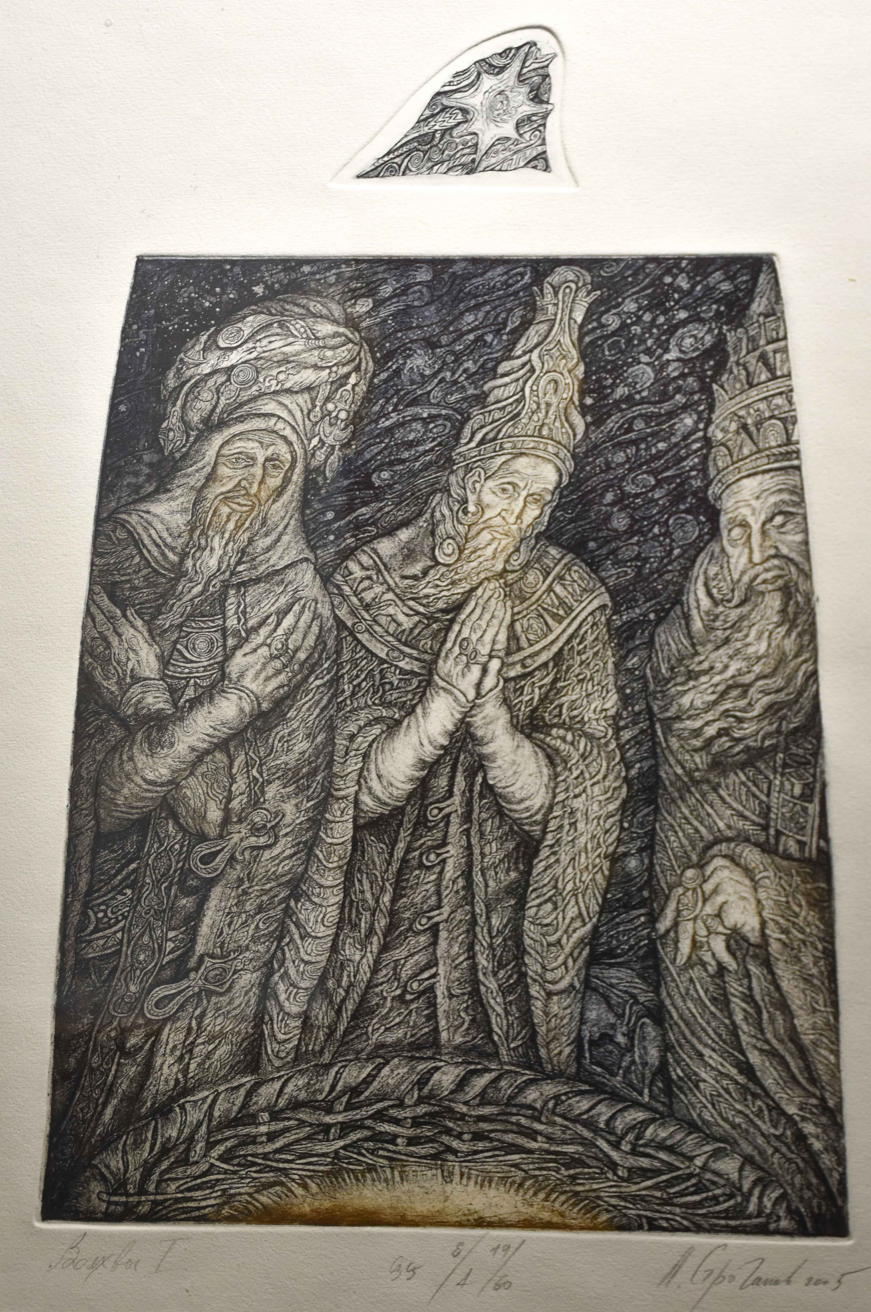 Зрители могут увидеть сюжет Поклонения волхвов, натюрморты с христианской символикой, а также фантазии художника на темы Средневековья и Египта.