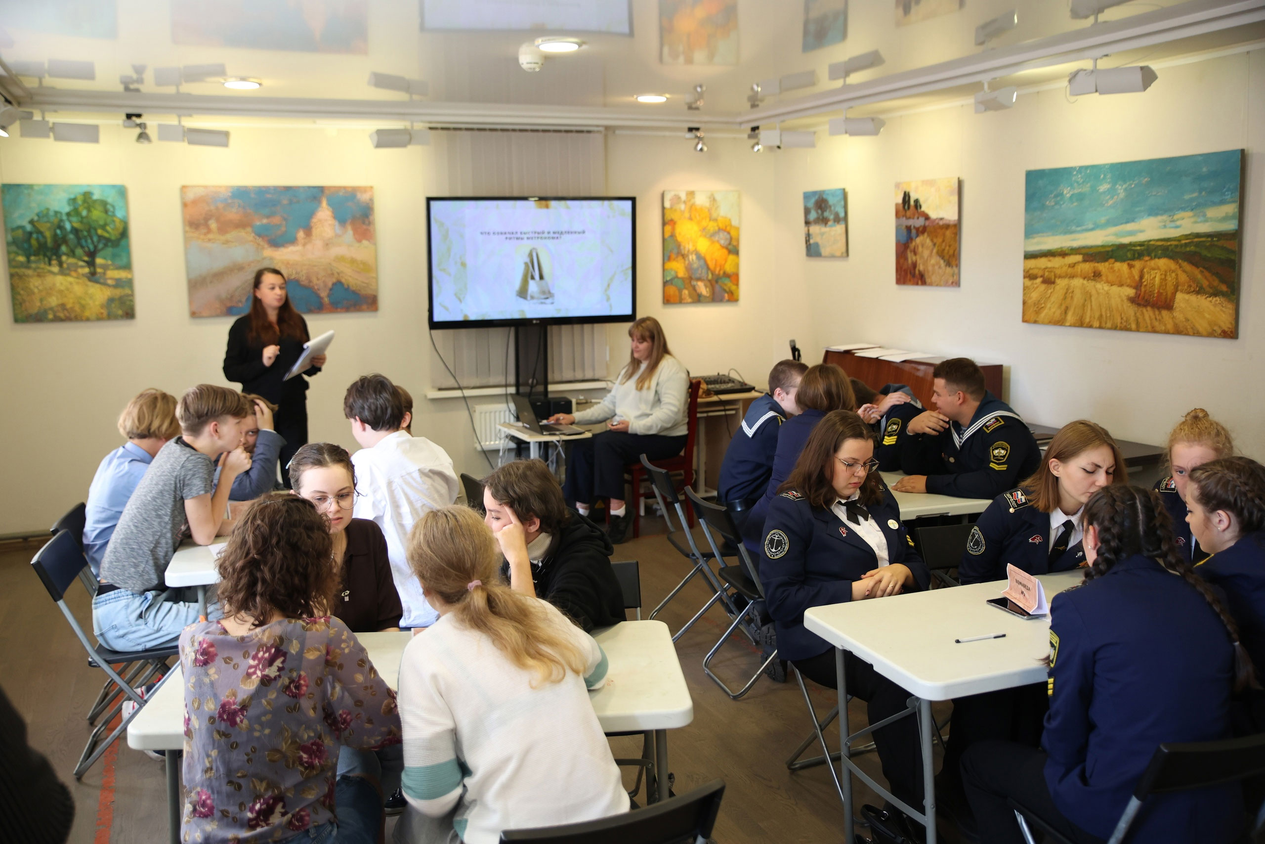 Игра состояла из 6 раундов разной сложности. И получилась по-настоящему разносторонней: ведь в ней приняли участие учащиеся абсолютно разных учебных заведений. К участию в игре сформировалось 4 команды: две команды студентов колледжа Государственного университета морского и речного флота имени адмирала С.О. Макарова, одна команда студенток СПБ ГБПОУ Санкт-Петербургского музыкально-педагогического училища, и одна команда учеников СПБ ГБОУ средней общеобразовательной школы 619 Калининского района.