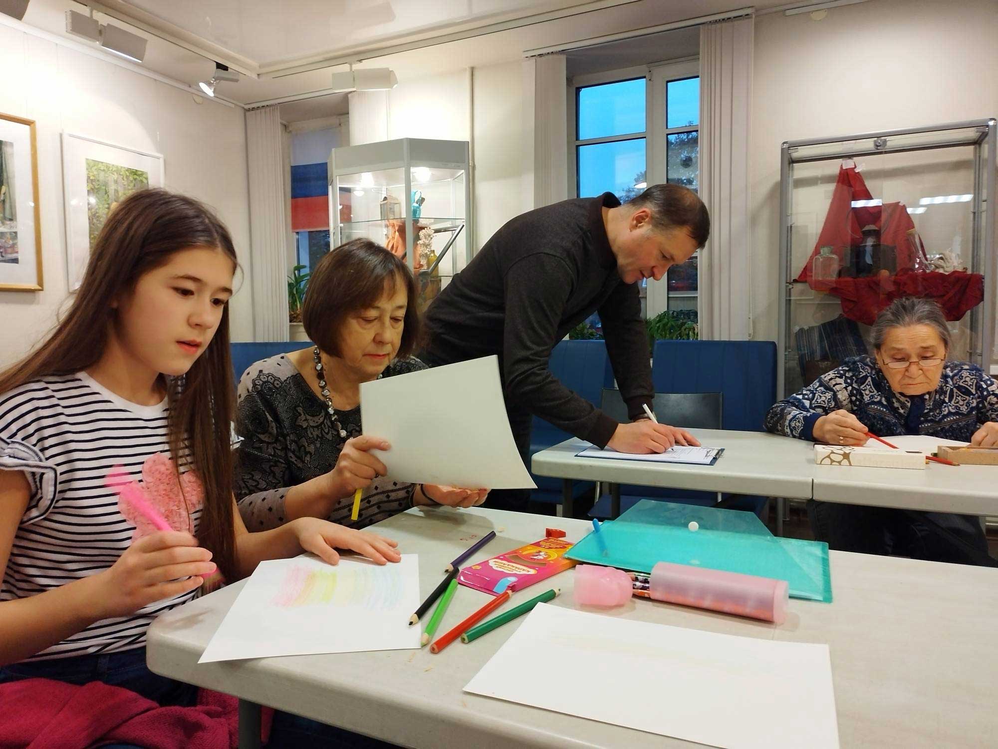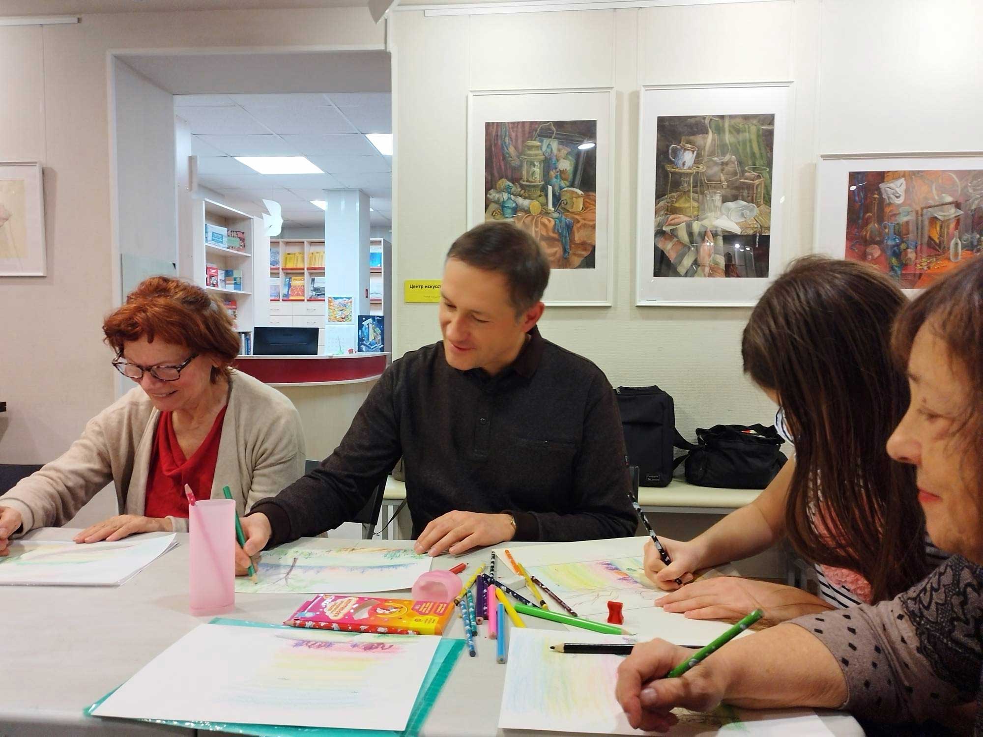 В рамках выставки Ирина Михайловна провела авторский мастер-класс по графике цветными карандашами. Данный художественный материал кажется простым, знакомым нам с детства, и поэтому не очень серьезным. Но это не так. Графика цветными карандашами имеет массу возможностей и обладает огромным разнообразием приемов, позволяющих имитировать техники масла, акрила, акварели, а также графитных и пастельных карандашей.