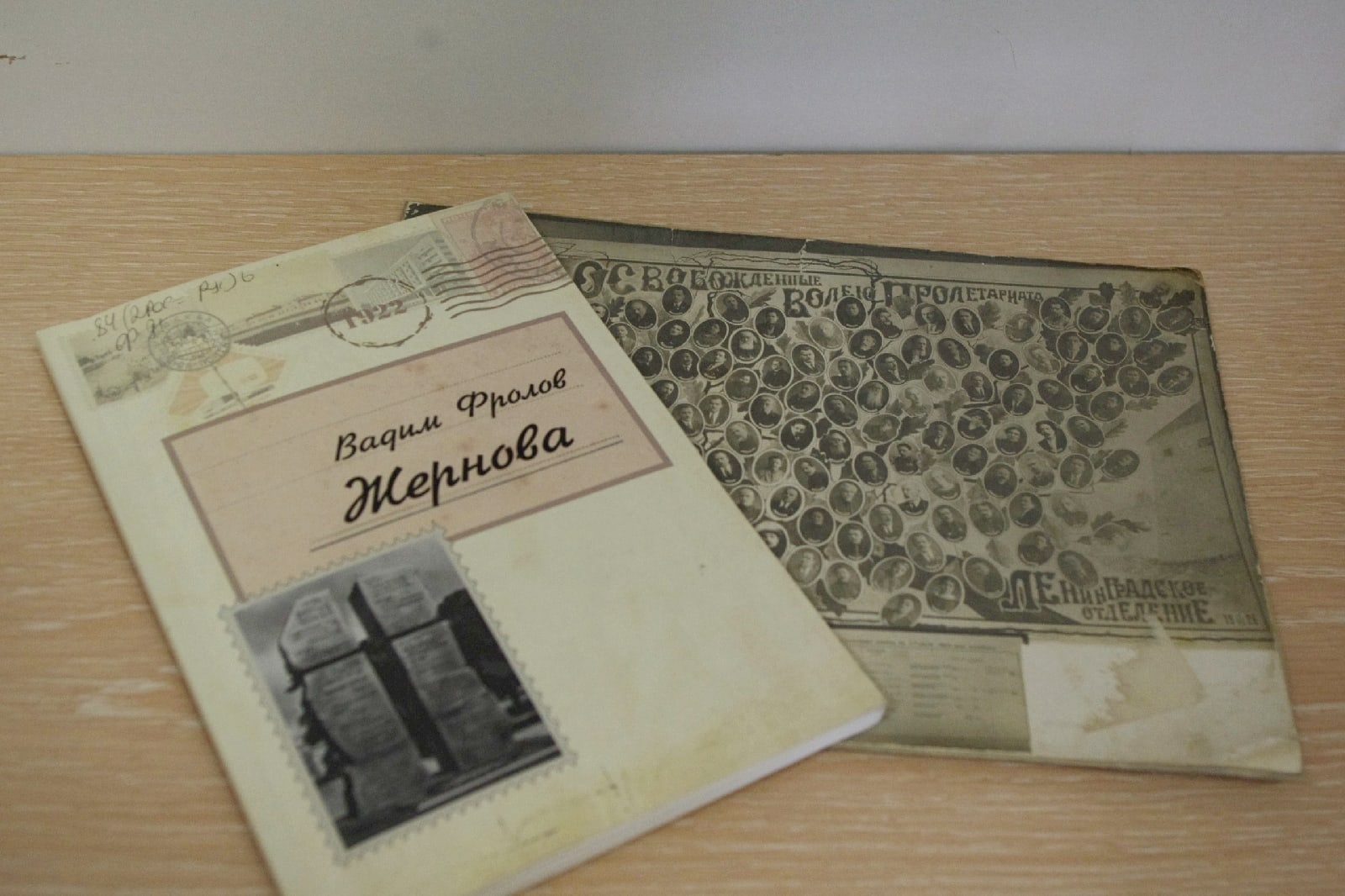 Многим читателям библиотеки, расположенной в доме на Троицкой площади, известном как Дом политкаторжан, знакома книга «Жернова» советского писателя Вадима Фролова. Она и была выбрана для выставки – совсем не случайно. Автобиографическая повесть рассказывает о судьбах членов Ленинградского общества бывших политкаторжан и ссыльнопоселенцев – первых жителей Дома политкаторжан, среди которых были и родители Вадима Григорьевича. Воспользовавшись собственным архивом документов, часть которых передала в библиотеку вдова писателя Евгения Фролова, библиотекарям удалось дополнить художественный текст документальными подтверждениями и копиями фотографий героев книги.