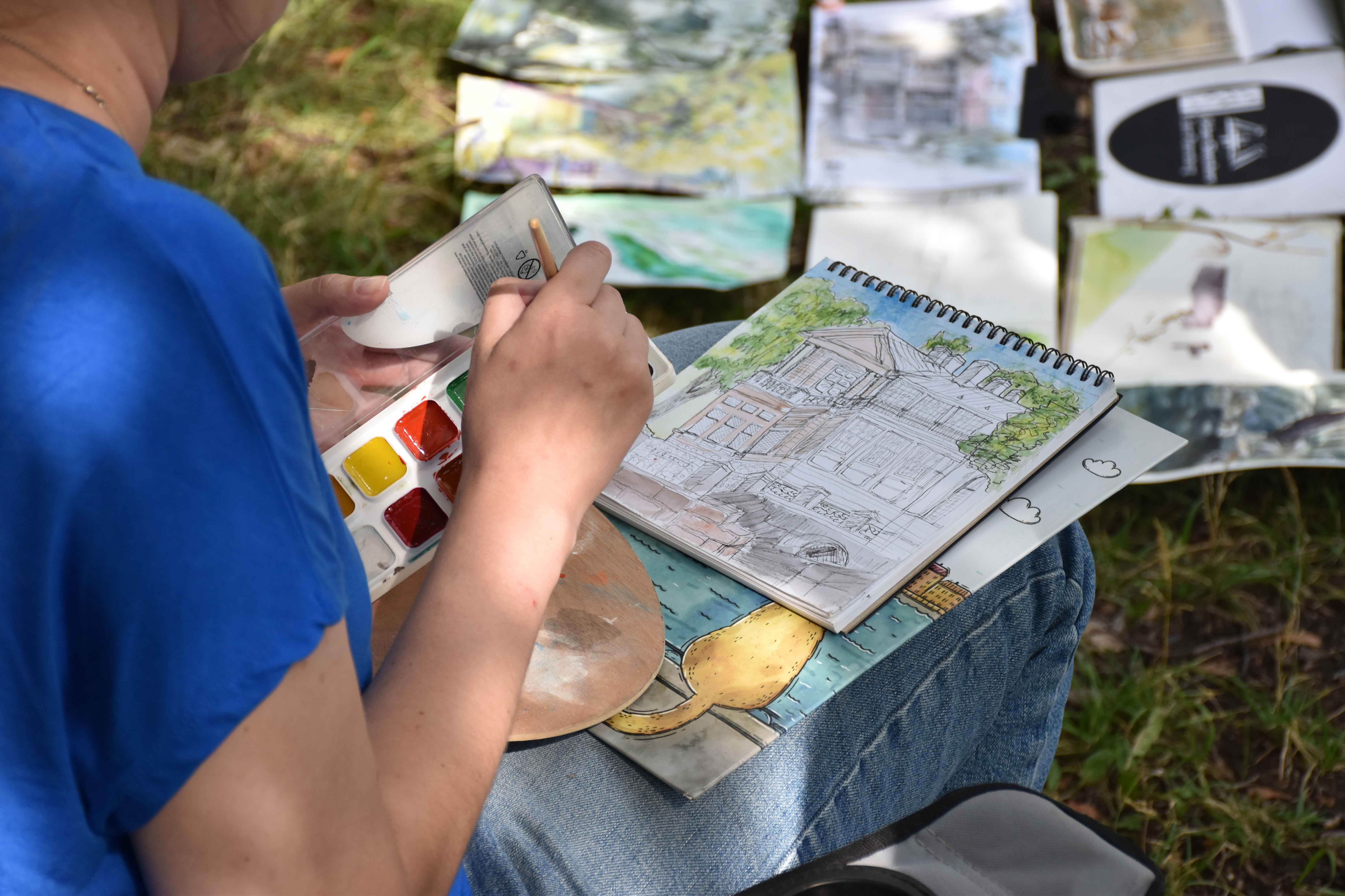 На открытии художники рассказали о своих работах, поделились техническими особенностями создания скетчей и приоткрыли несколько тайн своего мастерства. Сразу после открытия участники и зрители отправились на мастер-класс к Даче Громова. Пленэр прошёл в два этапа: знакомство с основными принципами построения перспективы и сложных архитектурных форм, а затем – самостоятельная работа в различных техниках. Ведущая – художник и педагог Елена Ковалевская на примере Дачи показала особенности изображения архитектурных сооружений в быстрых и динамичных зарисовках. Также участники узнали о специфике работы с акварелью на небольших форматах, и возможностях других материалов.
