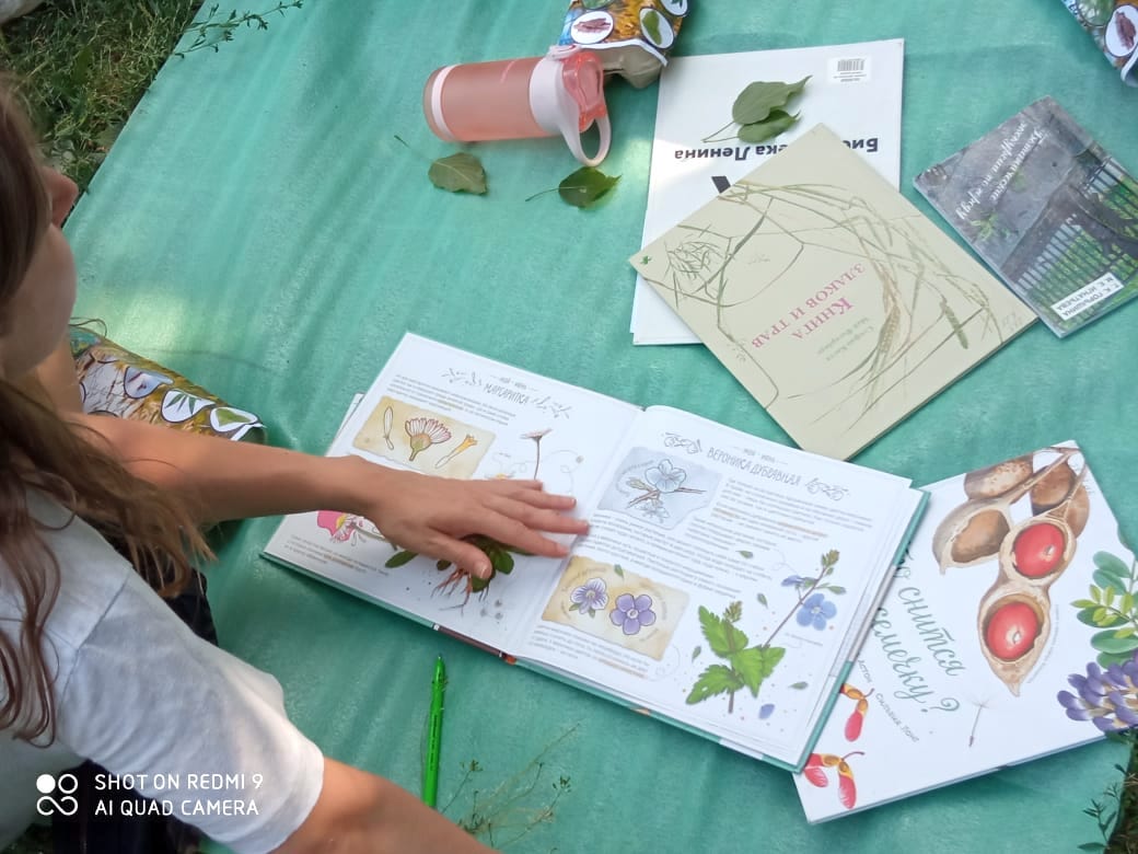 После удачной «охоты» участники читали книги о растениях, которые мы взяли в нашей библиотеке, рассказали о своих находках, поделились тем, что их интересует в мире растений.