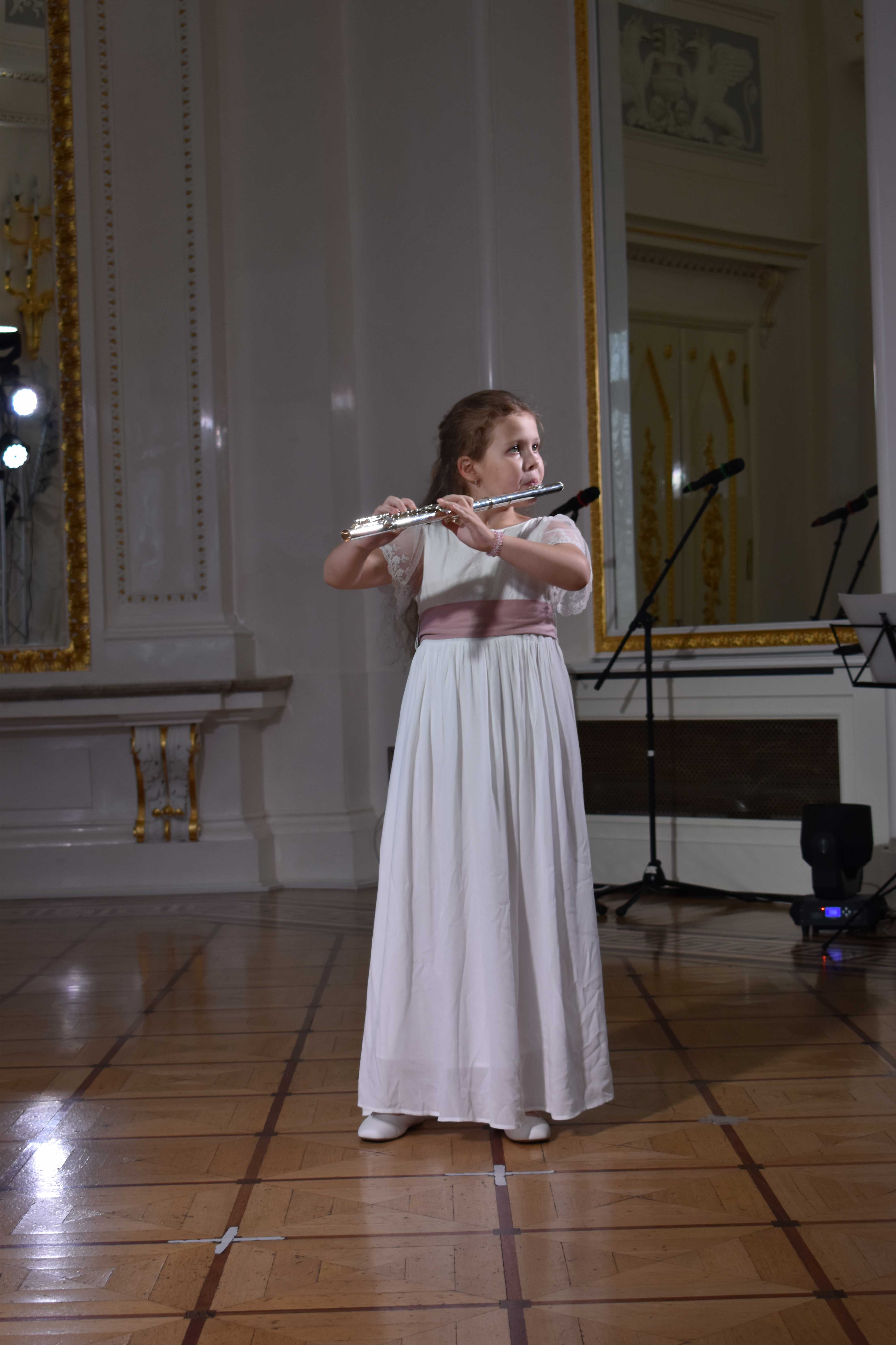 Открыла концерт Алисия Максимова, учащаяся класса флейты Марии Куковякиной, преподавателя Детской музыкальной школы имени Г.А. Портнова, сыграв нежную «Ностальгию» Ю. Должикова. Далее выступила самая юная исполнительница Алиса Петтракин (Италия), исполнив на кларнете народную песню «О па па» и пьесу Дж.Больвея «Мяч» (концертмейстер Евгения Наливкина).