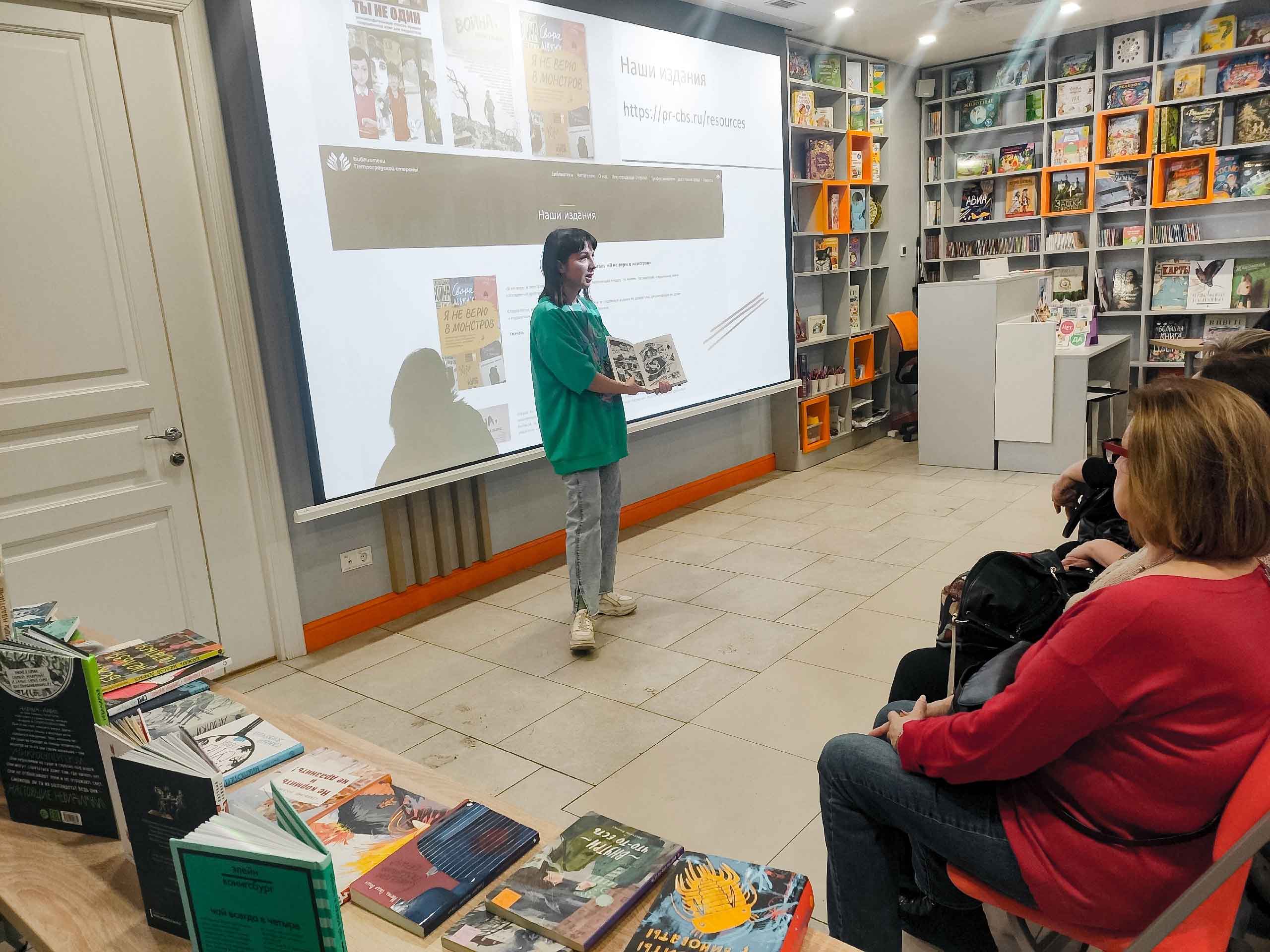 Кроме того, для коллег был проведён обзор самой востребованной отечественной литературы для детей и подростков. Главный библиотекарь, Любовь Алейник, рассказала о творчестве авторов, книги которых сейчас пользуются особой популярностью (Нина Дашевская, Евгений Рудашевский, Анастасия Строкина и проч.) Особое внимание было уделено отечественному комиксу и научно-популярной литературе – глубоким и проникновенным комиксам издательства «Бумкнига», самым ярким и необычным книгам издательства «Самокат», раскрывающим научные факты «по-новому» («История старой квартиры», серия «Микросупергерои», «Из гнезда»), ярким и познавательным энциклопедиям издательства «Пешком в историю».
