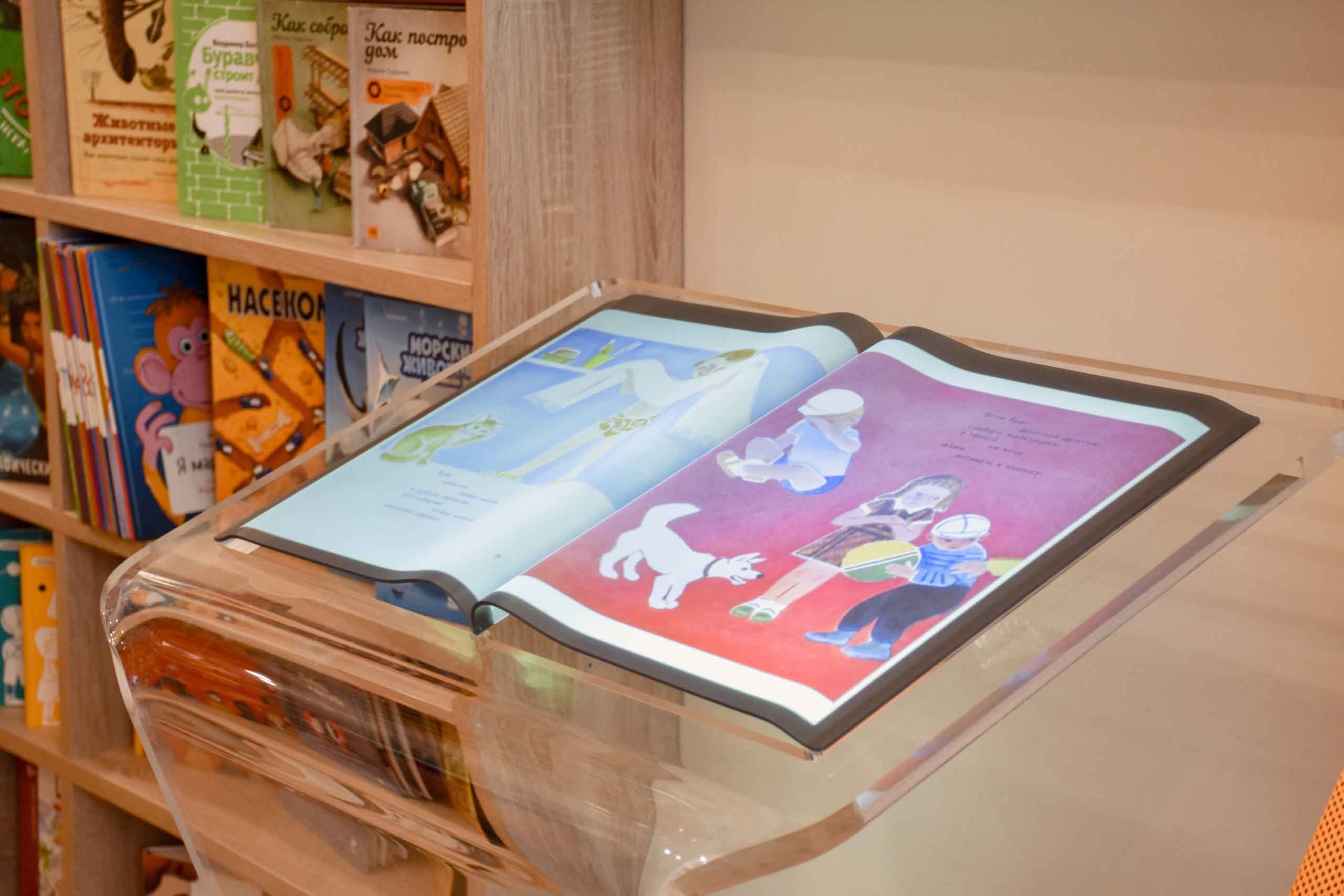 В одном из залов библиотеки коллегам была представлена интерактивная электронная книга, в которой хранятся оцифрованные версии бумажных изданий 1960-1980х годов, не подлежащие выдаче читателям в силу ветхости. Благодаря современным технологиям лучшие образцы отечественной литературы и иллюстрации доступны самым юным читателям для знакомства и чтения наряду с современными изданиями.